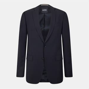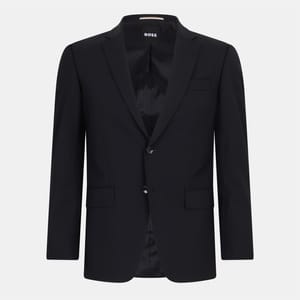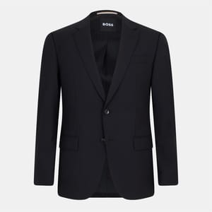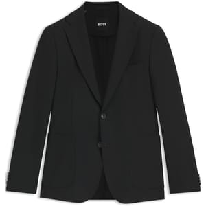 Boss Solid Patterned Notch Collared Blazer with Flap and Chest Pocket