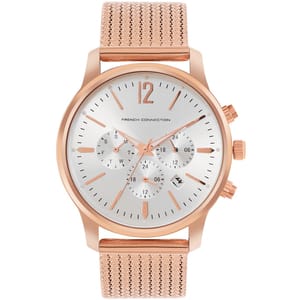 French Connection Connection Ikon Silver Round Analog Watch With Rose Gold Strap For Men