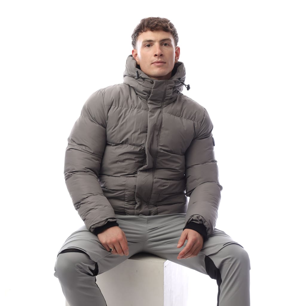 Commercial Puffer by Cruyff in grey is a versatile and eco-friendly jacket, crafted from 100% polyester. Designed for a regular fit, it features a water-repellent coating and is both lightweight and breathable, making it ideal for various weather conditions. The jacket is lined with recycled material and contains no animal-derived components, blending sustainability with modern style. -