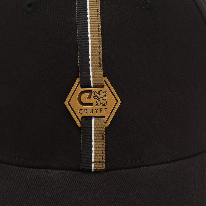 Adjustable strap. Ventilation eyelets. Cruyff branding, such as the lion logo or Montserrat graphics. -