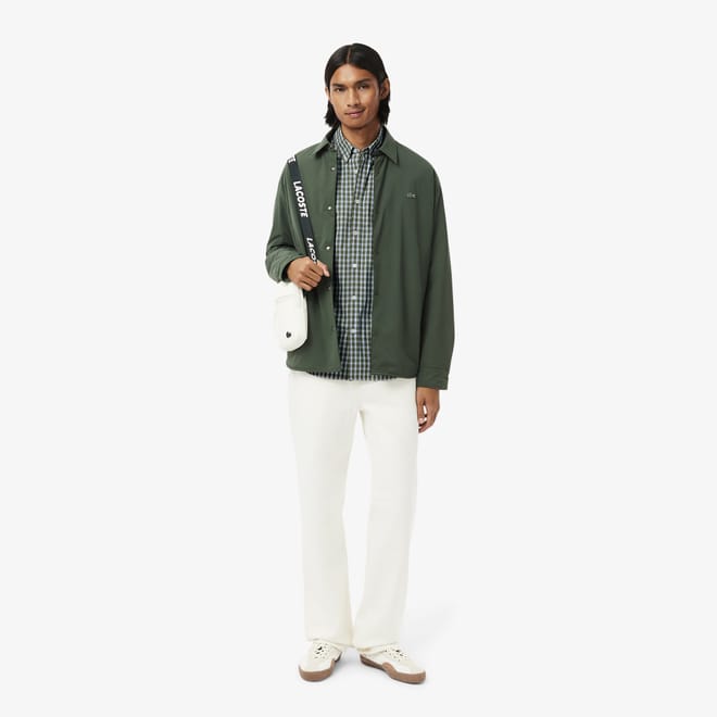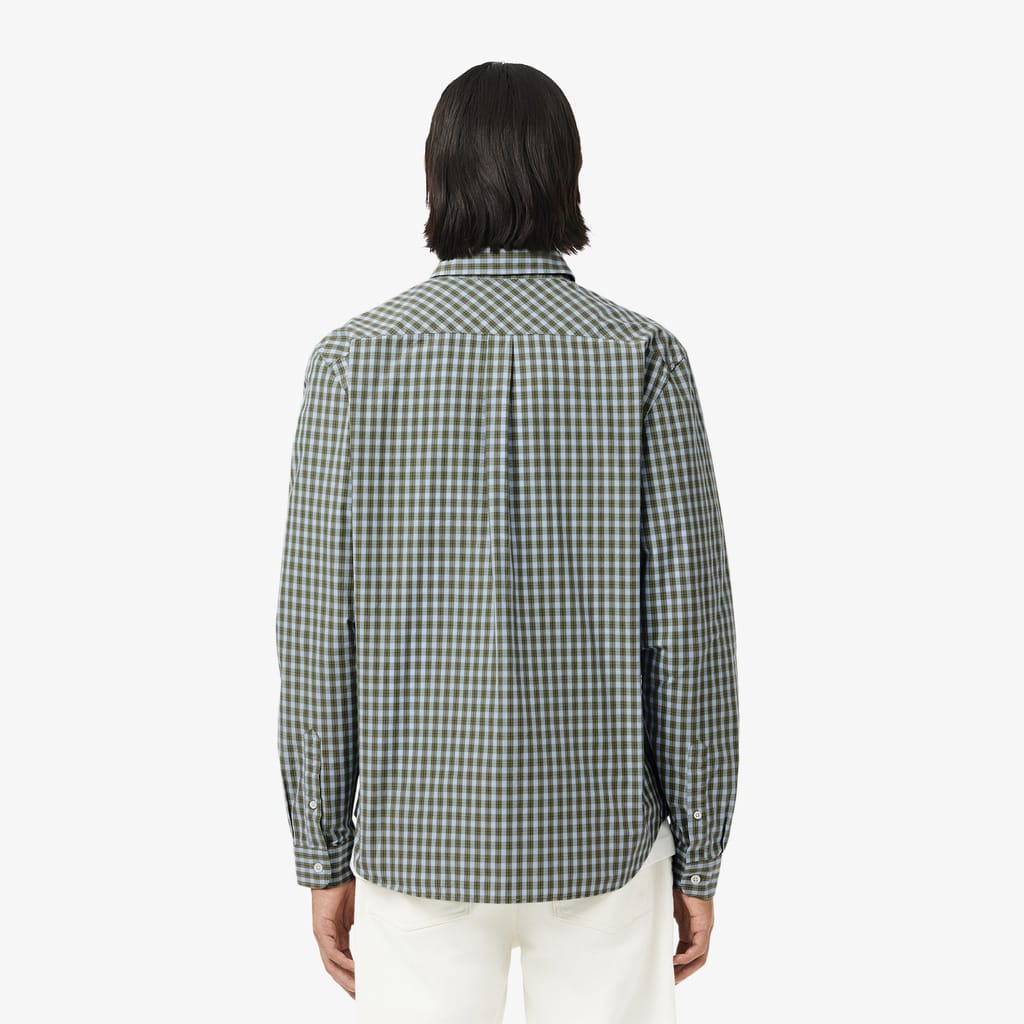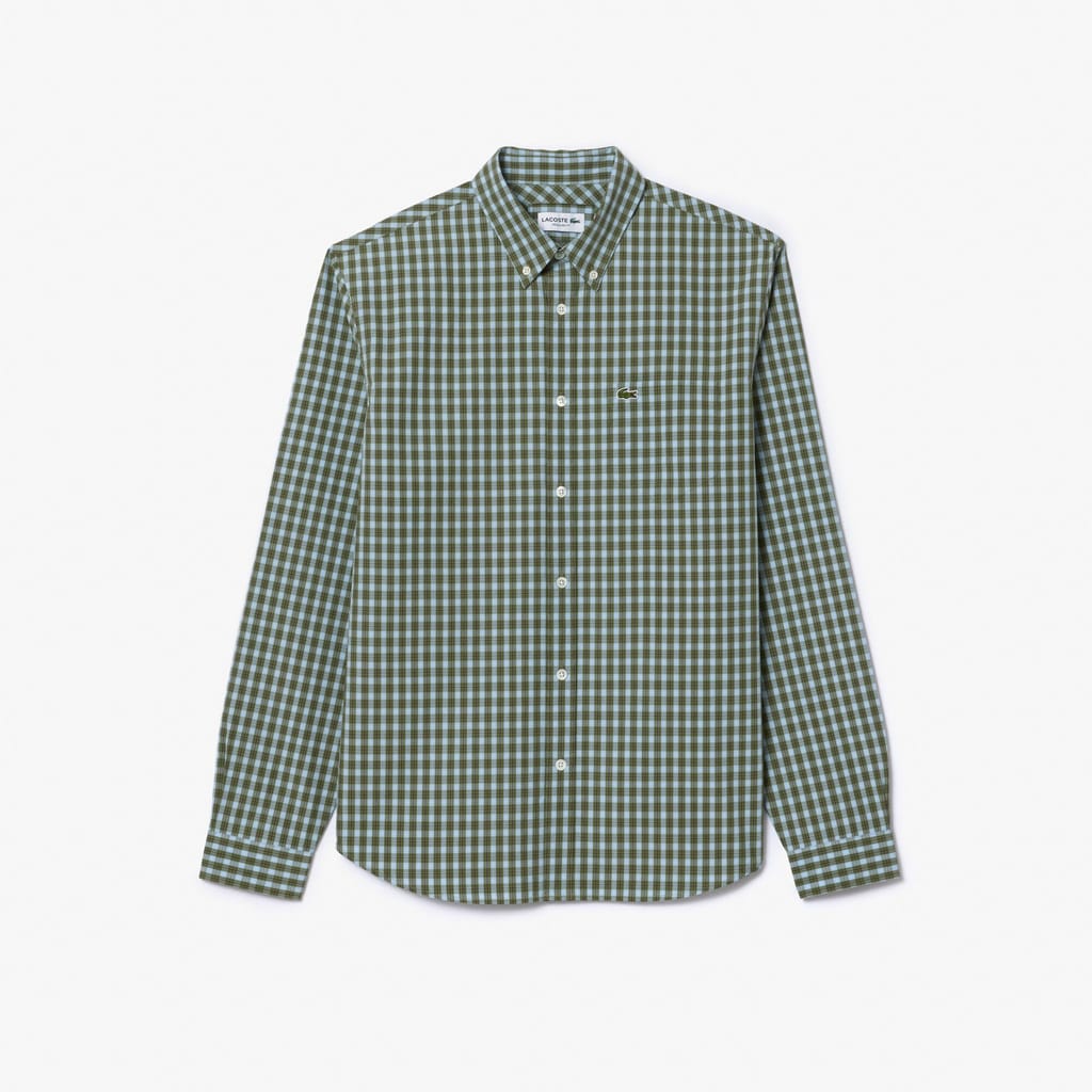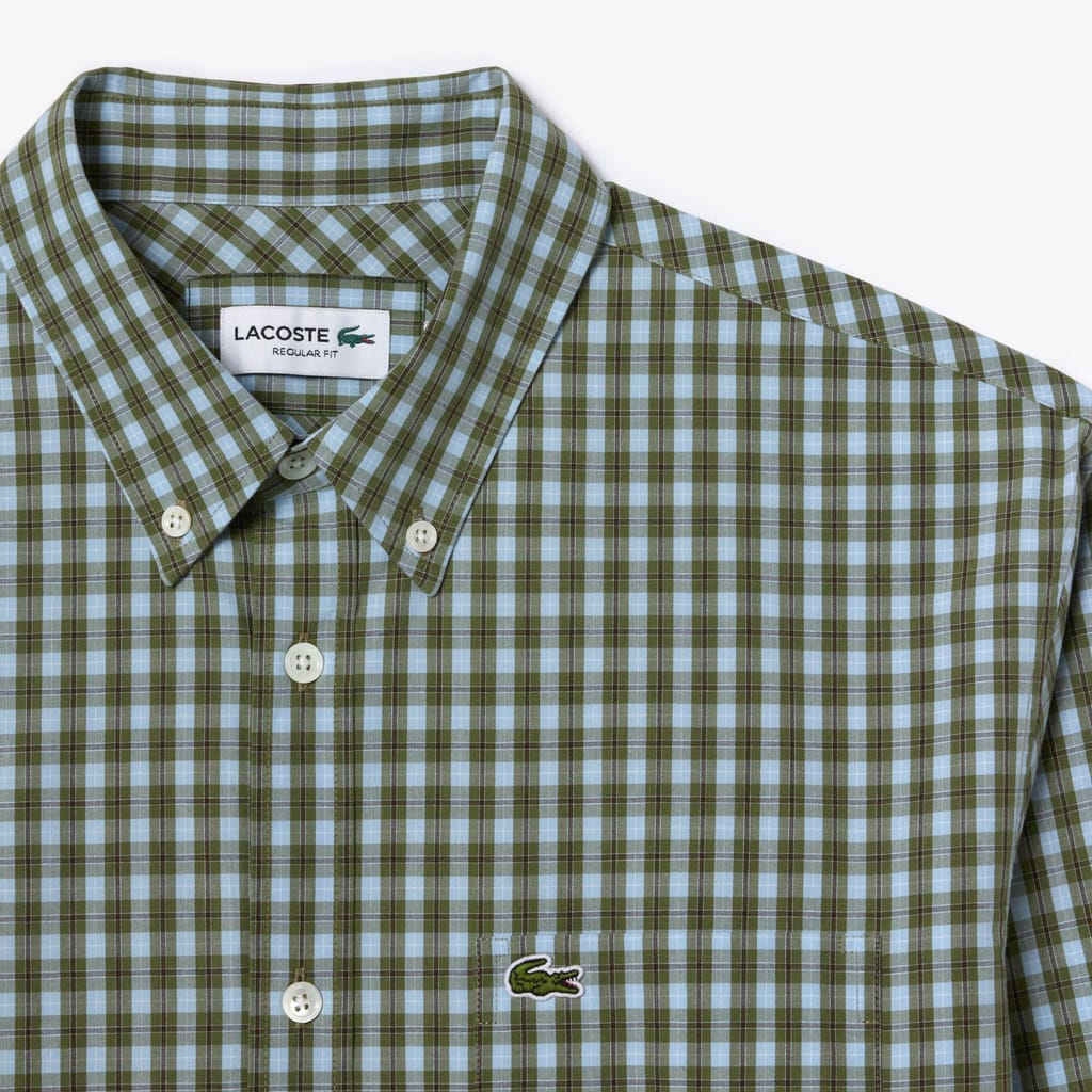 Mens Lacoste Regular Fit Plaid Poplin Shirt in khaki / multicolour