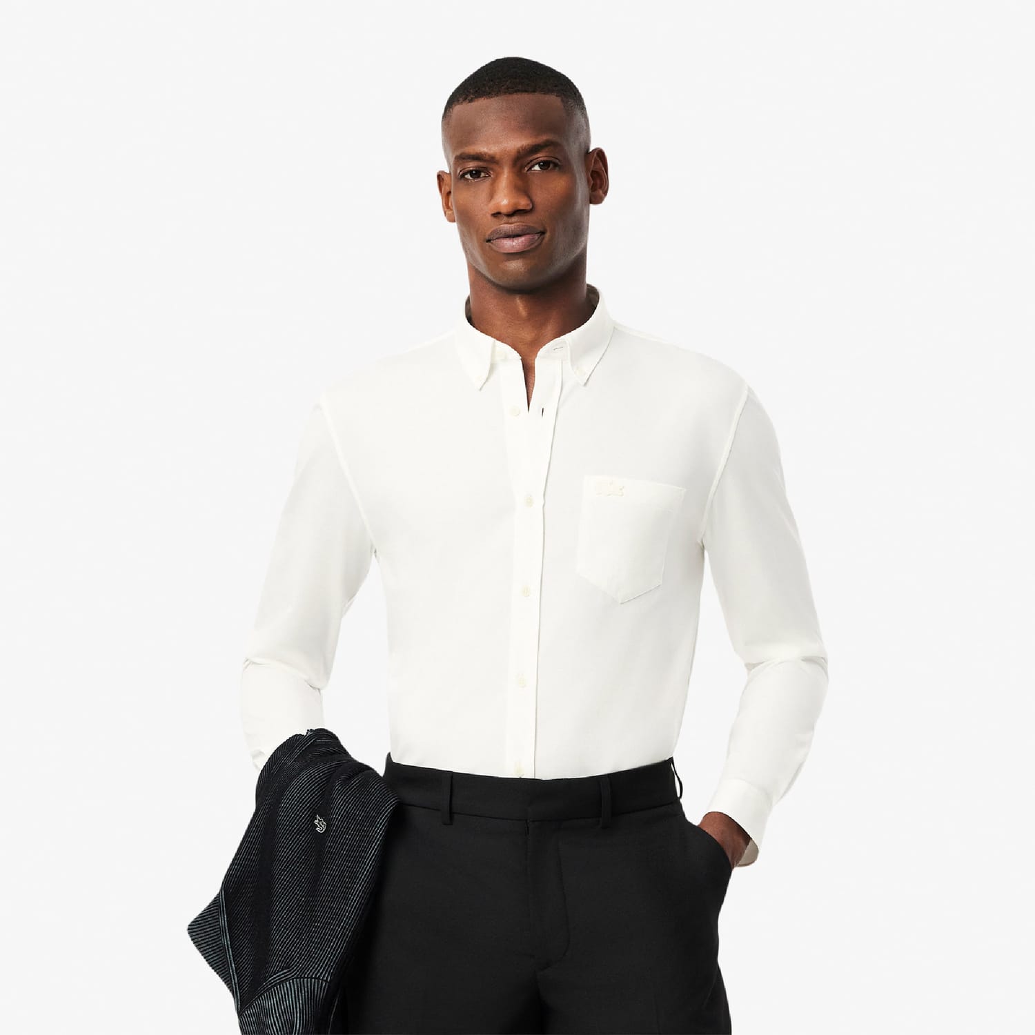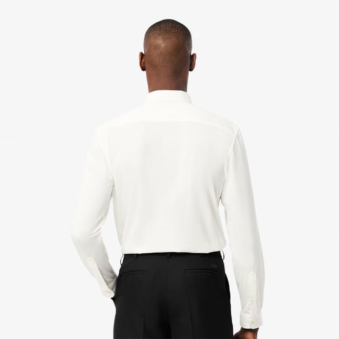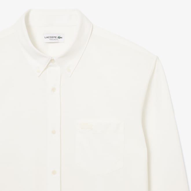 This Lacoste shirt is a lesson in expert design. A blend of comfort and elegance, featuring stretch cotton jersey fabric, a straight cut, and sophisticated details, including mother-of-pearl buttons. A casual chic style, finished with a signature embroidered crocodile.