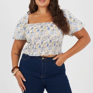 Brave Soul Womens Plus Size Puff Sleeve Top With Ruched And Tie Details.