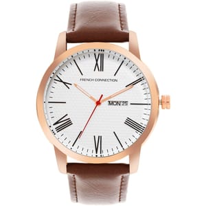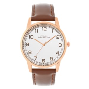 French Connection Connection Rose Case Round Shape Brown Strap Quartz Watch