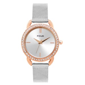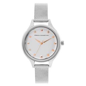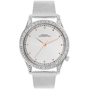 French Connection Connection Rose Case Round Shape Silver Strap Quartz Watch