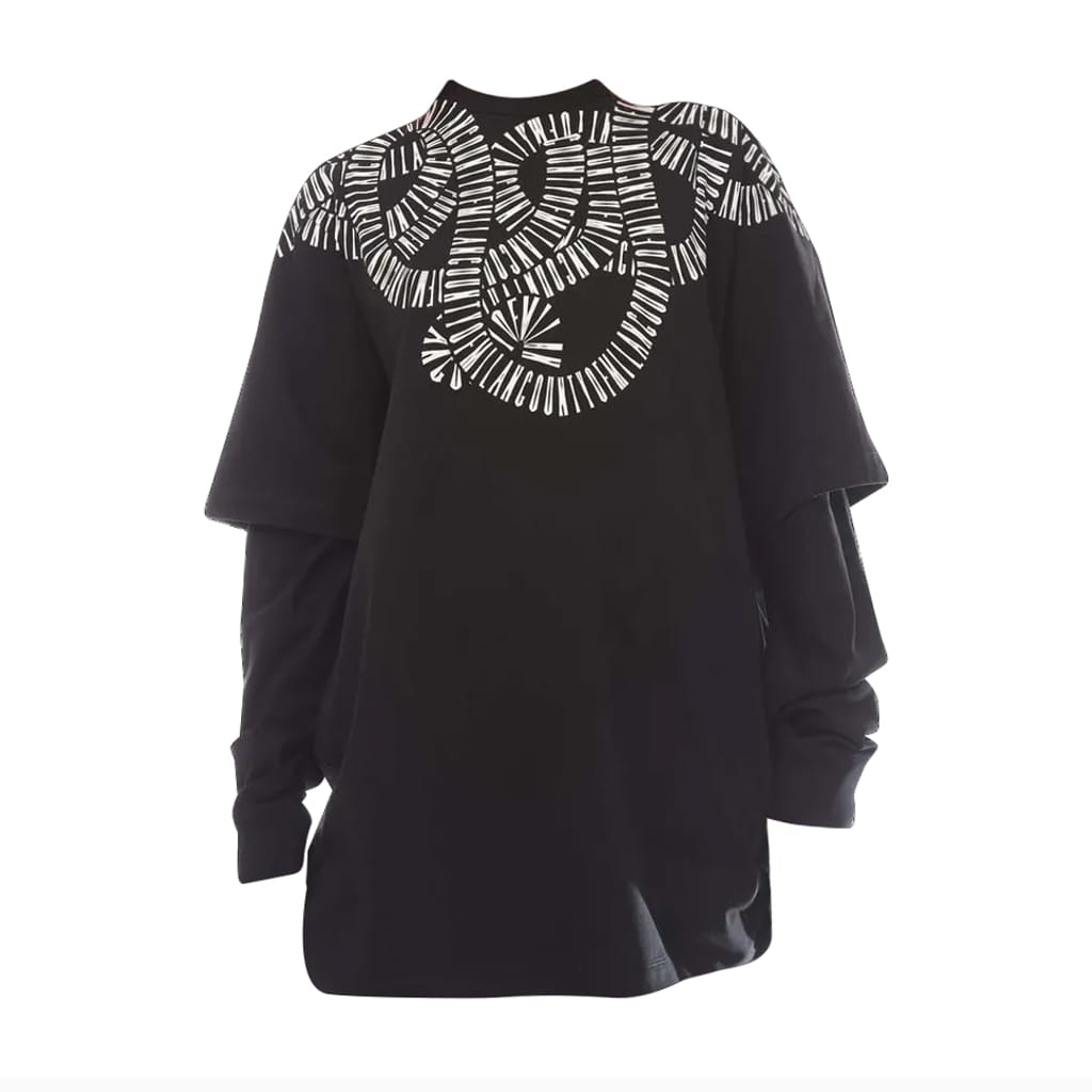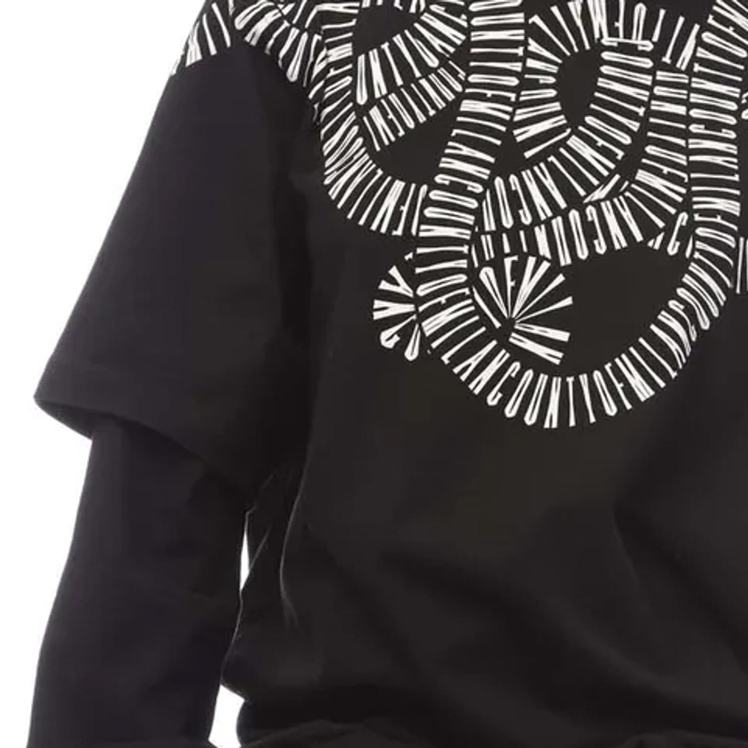 Mens Marcelo Burton Snake Wings Double Sleeve T- Shirt in black-white.