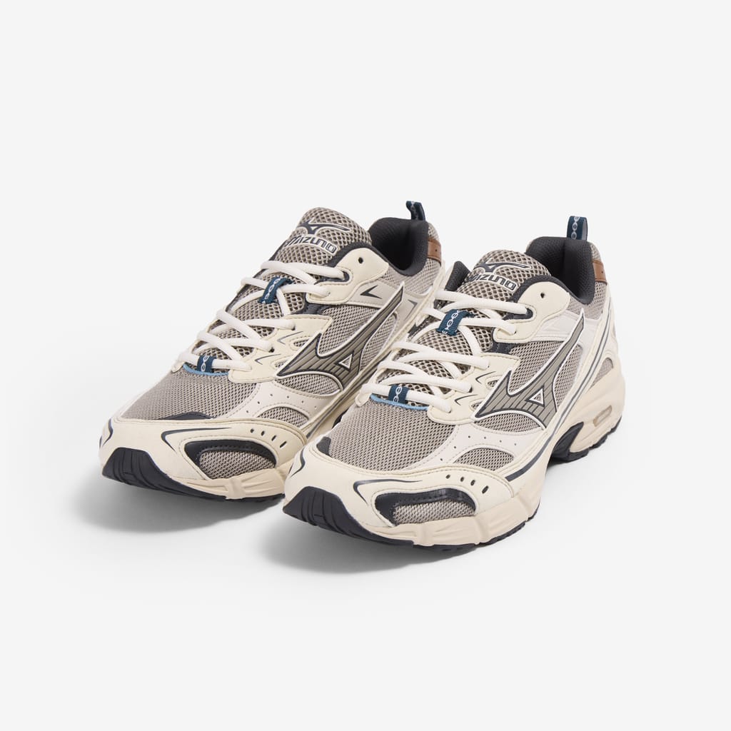 The MXR Sport draws inspiration from the Maximizer line. Straight from the early noughties’ catalogues, it captures that era’s retro-tech aesthetic to perfection. Mizuno’s commitment to excellence and craftsmanship is central to the MXR Sport, where every aspect of the sneaker reflects the brand’s ongoing pursuit of a balance between tradition and innovation. The MXR Sport features a palette of tonal colours, with the only contrast being the Runbird logo. By opting for this design approach, the attention is directed towards the refined combinations of materials, details, and finishes of the shoes. -