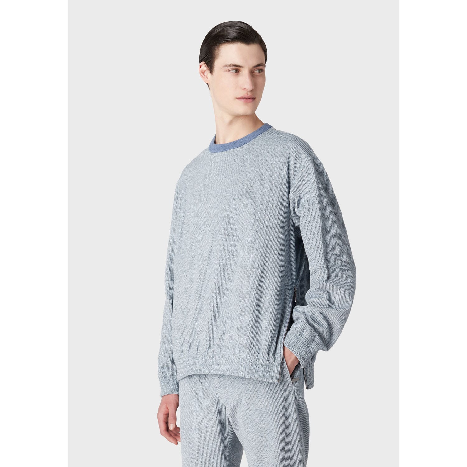 Crewneck. Elasticated cuffs and hem. Side zip. Loose fit. -