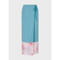 "long sarong-style skirt". Made from washed technical silk with a printed chiffon detail. The skirt has a wrap-style side closure with a button. -