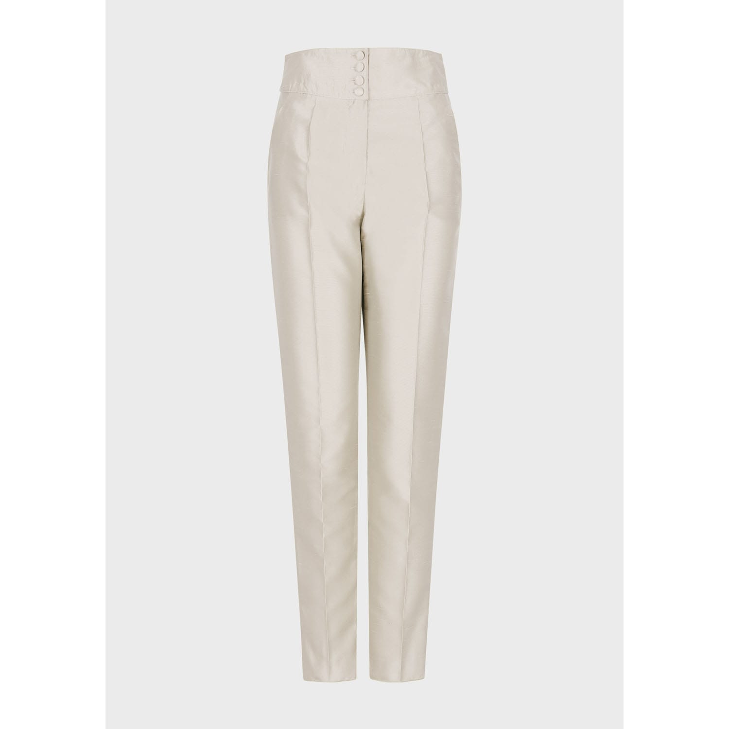 A pair of slim-fit trousers featuring belt loops, side pockets, and a zip fly with button closure. The clean silhouette makes them suitable for both business and smart-casual wear.- Lightweight fabric.- Regular fit.- Elasticated waistband.- Subtle branding detail. Material: 66% Polyester, 34% Silk. Ref: D4NP30D2070106. -