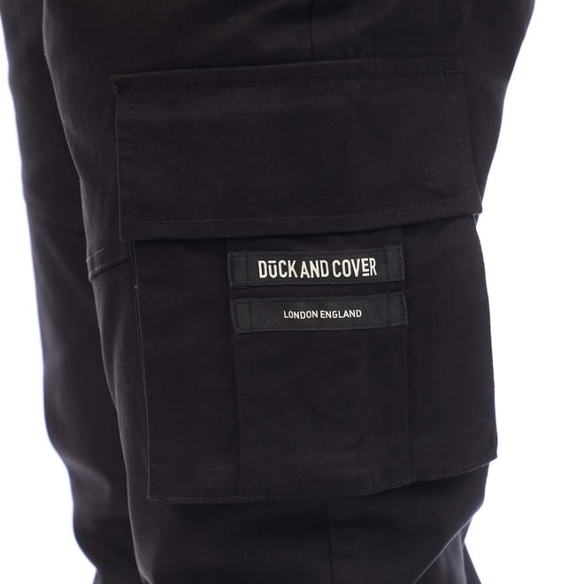 Mens Duck and Cover Chemmer Woven Joggers in black.