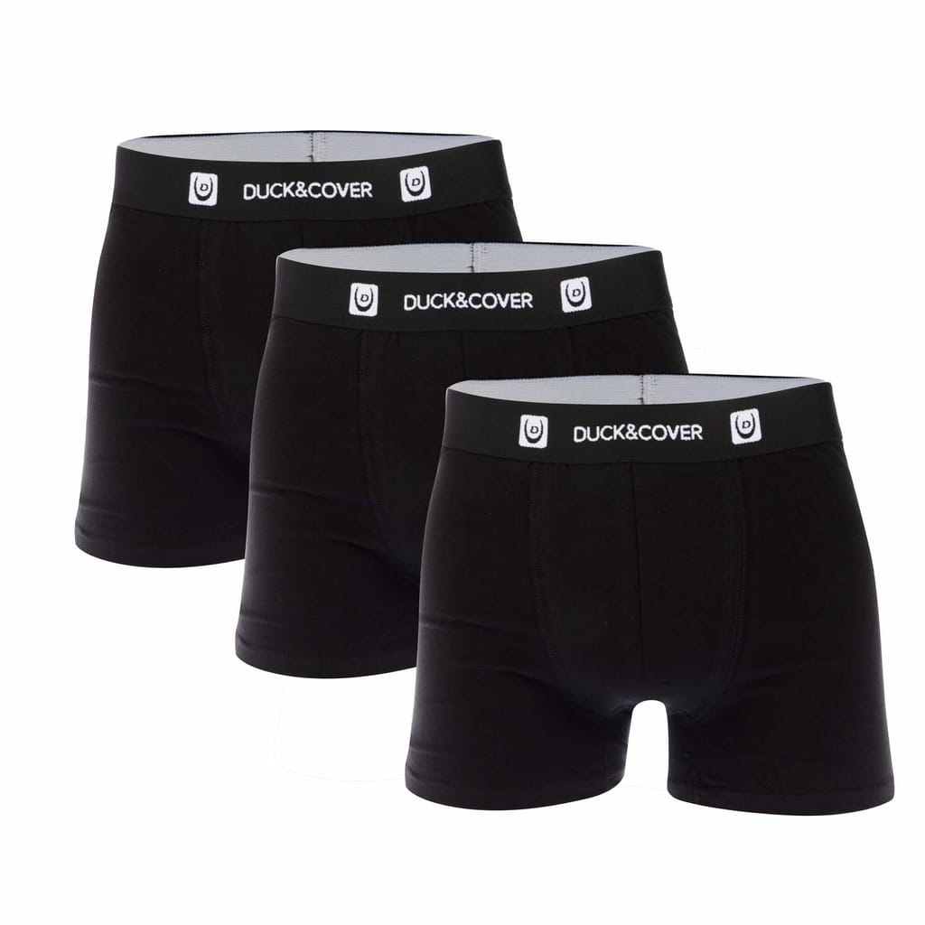 Mens Duck and Cover 3 Pack of Villani Boxer Shorts in black.