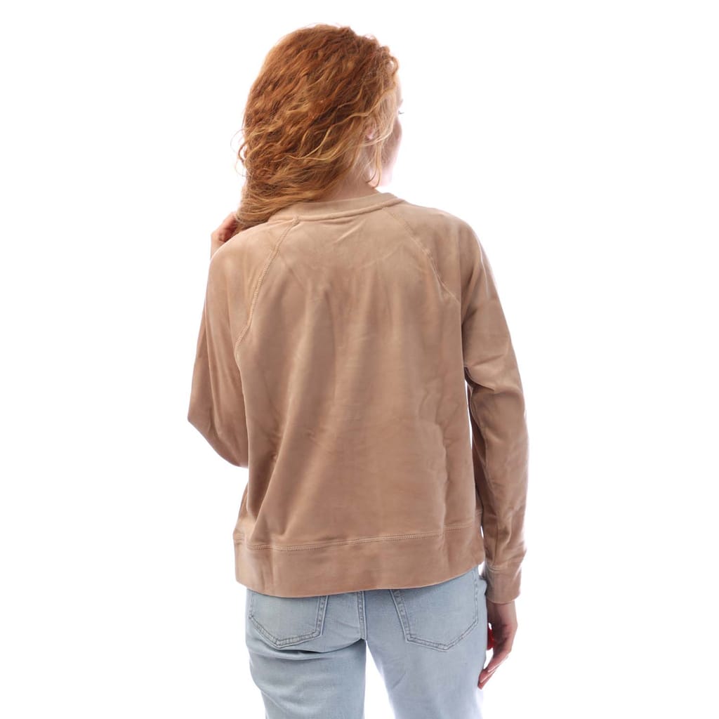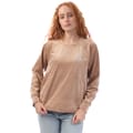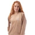 Womens DKNY Rhinestone Velour Logo Crew Neck Sweatshirt in beige.