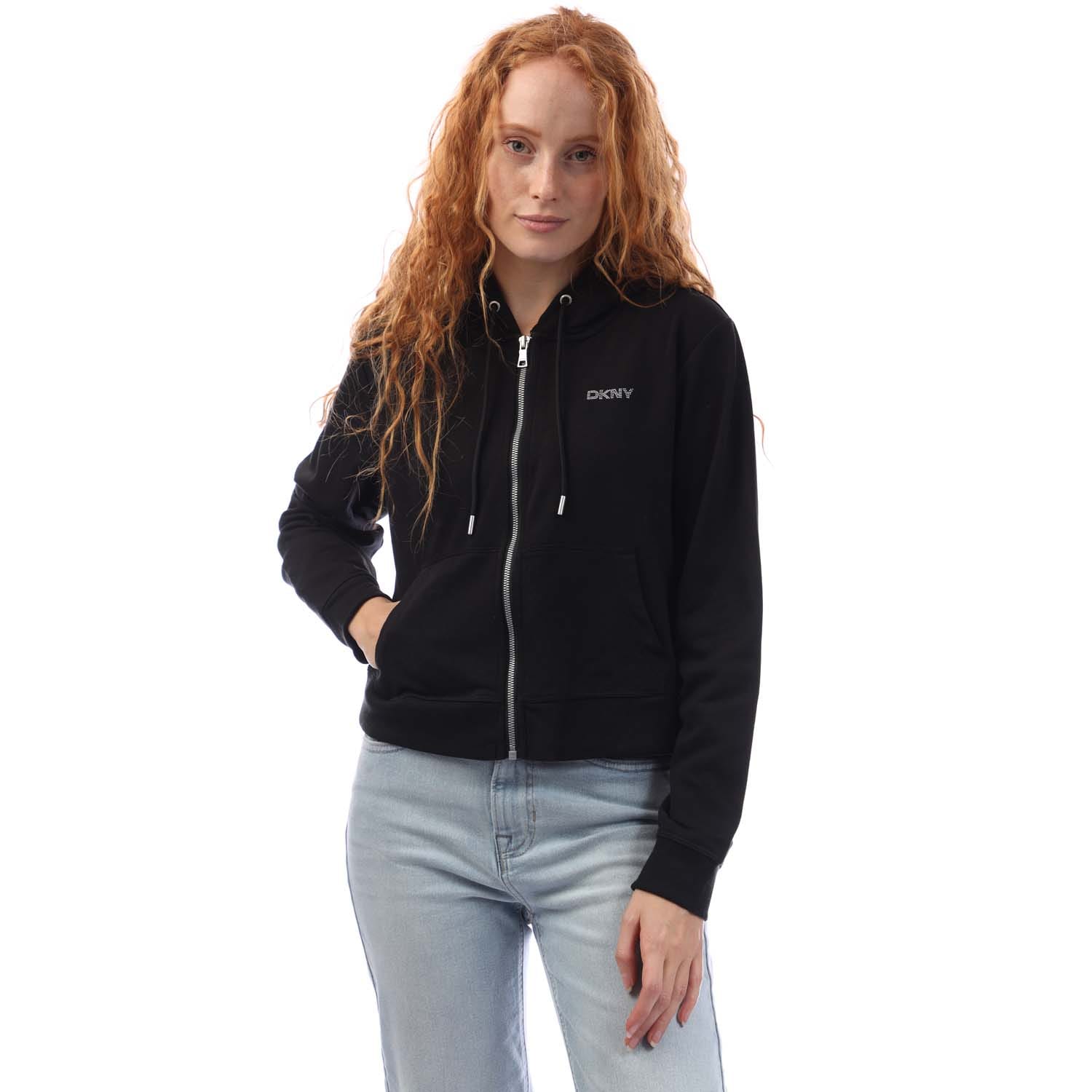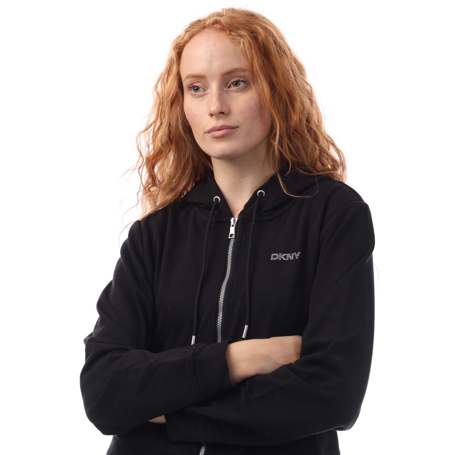 Womens DKNY Mini Stud Logo Full Zip Hoody in black.