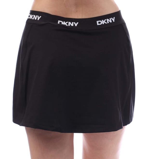 Womens DKNY Logo Elastic Compression Skirt in black.