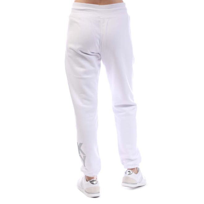 Womens DKNY Foil Logo Jogger with Pockets in white silver.