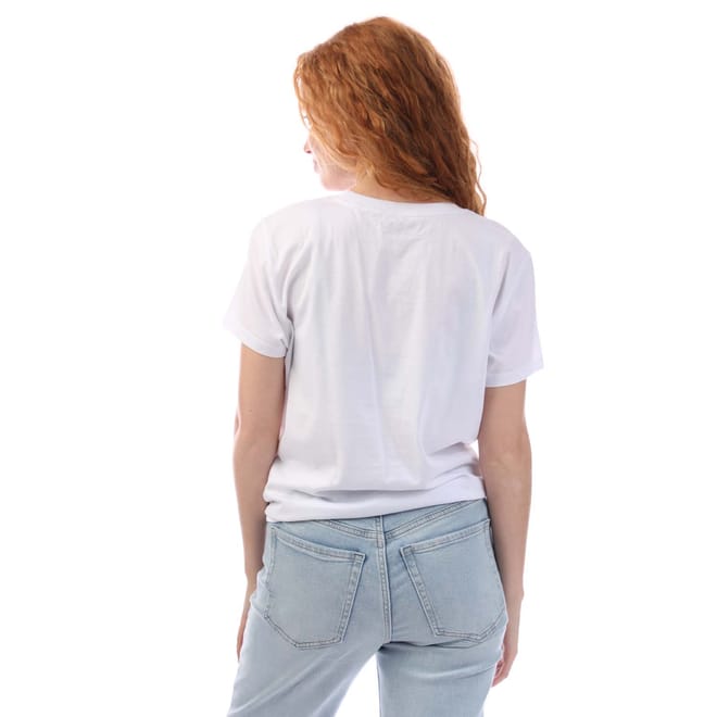 Womens DKNY Embellished Logo Knit T- Shirt in black.