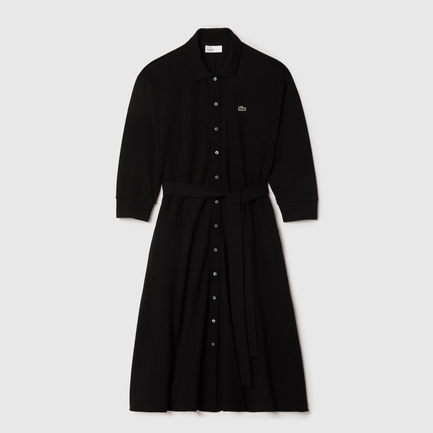 Womens Lacoste ¾ Sleeve Pique Polo Dress in navy.