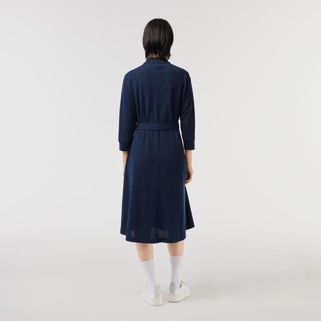 Womens Lacoste ¾ Sleeve Pique Polo Dress in navy.
