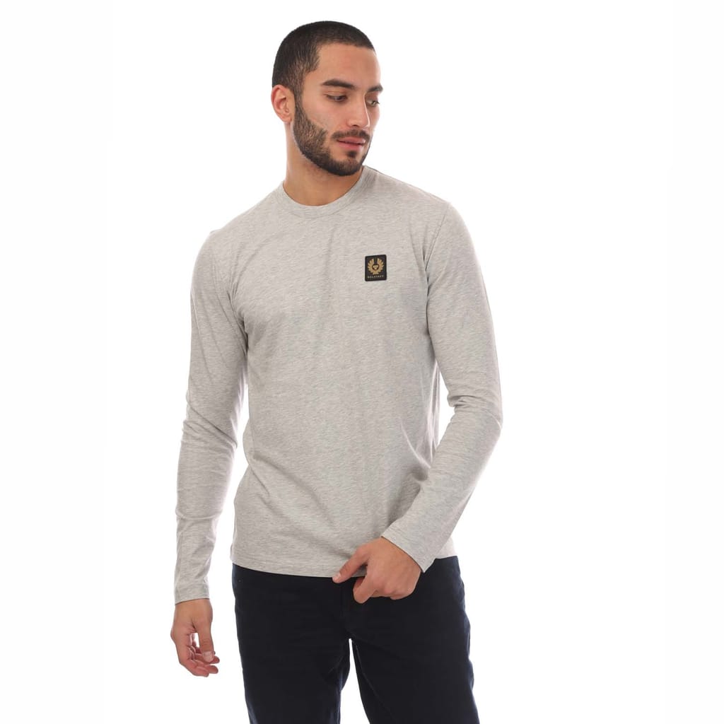 Mens Belstaff Cotton Jersey Long Sleeved T-Shirt in silver.