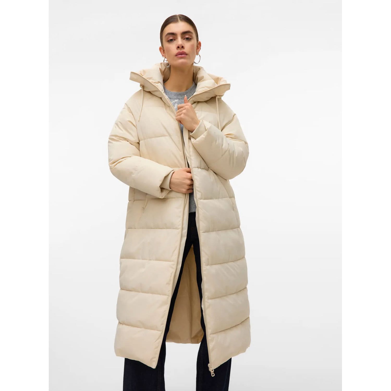 Womens Vero Moda Elanor Laurie Long Padded Coat in oatmeal.