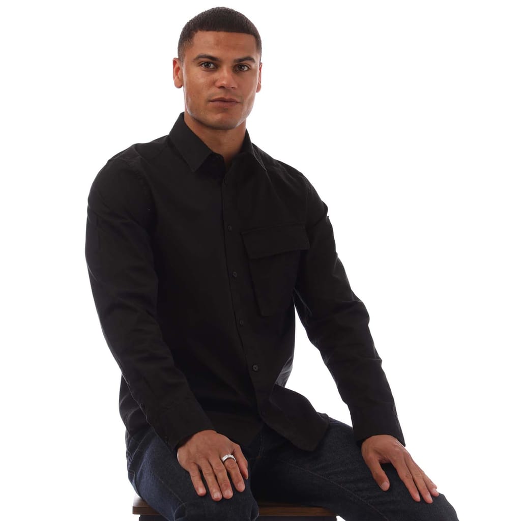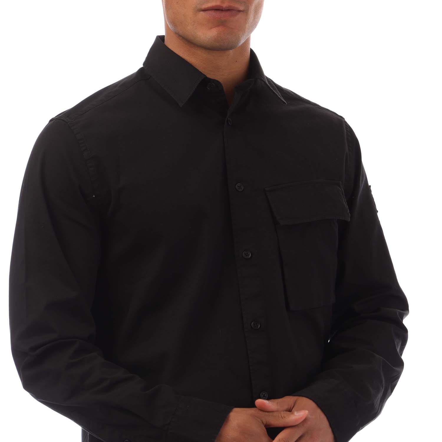Mens Belstaff Garment Dye Cotton Scale Shirt in black.