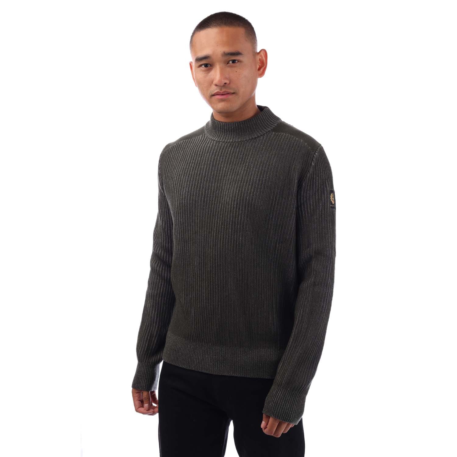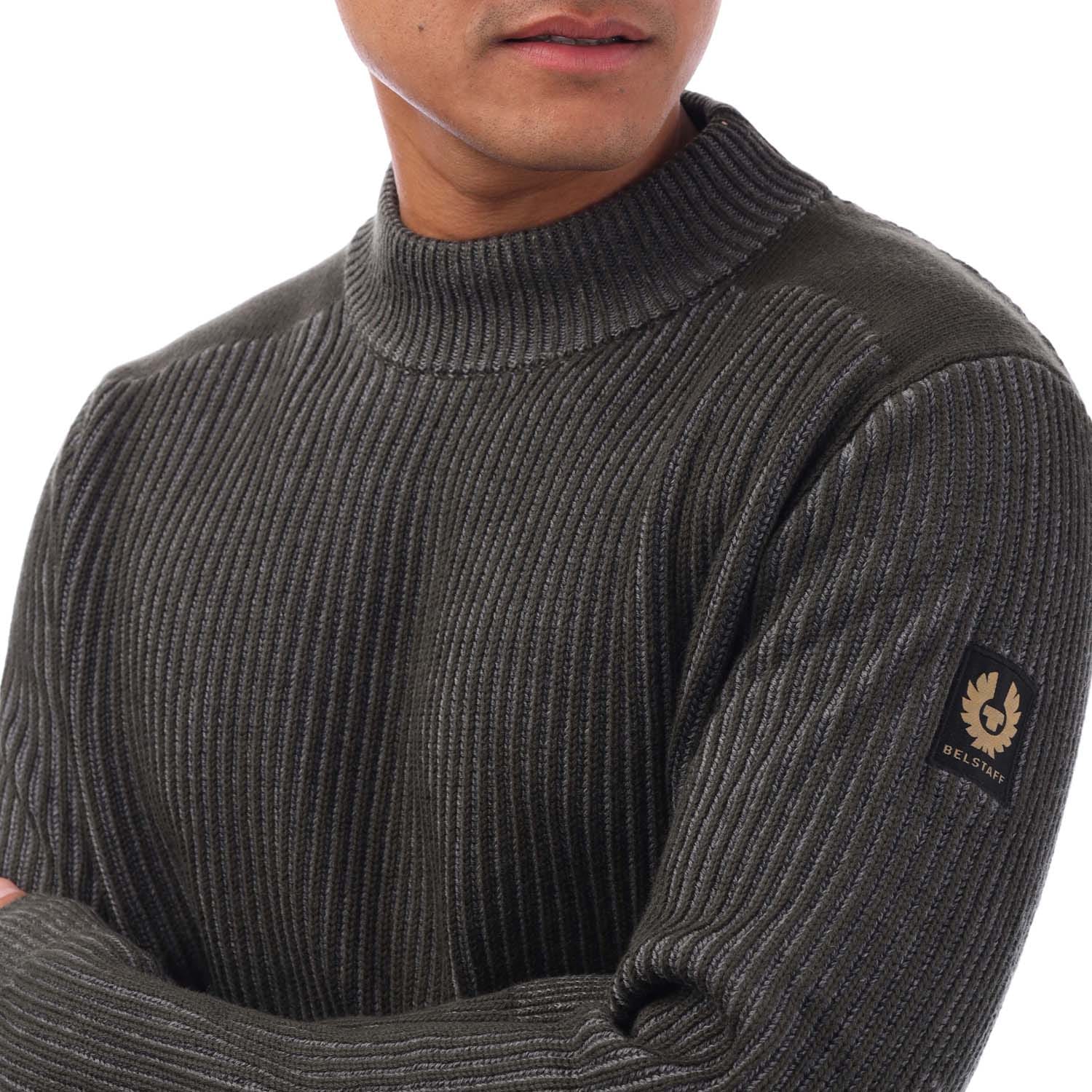 Mens Belstaff Stanley Mock Neck Jumper in green.