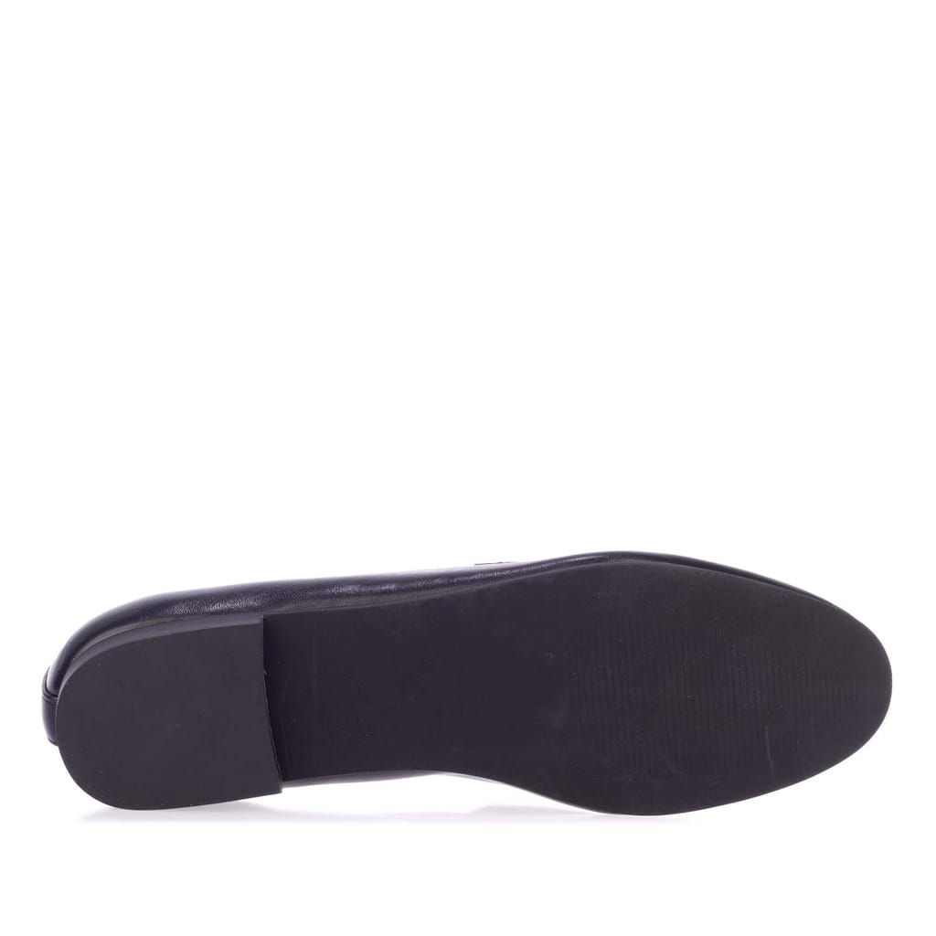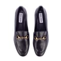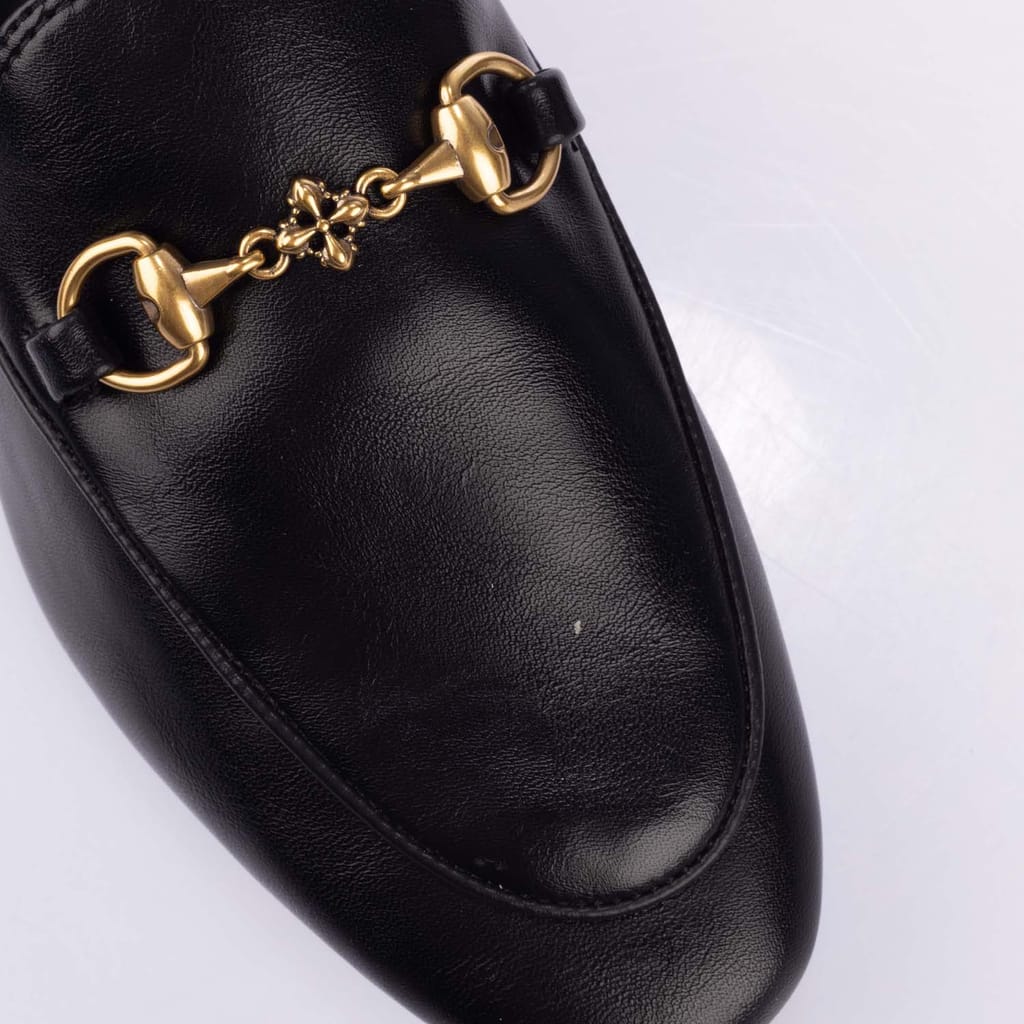 They feature a similar design with a black leather upper and a metallic horsebit detail. -