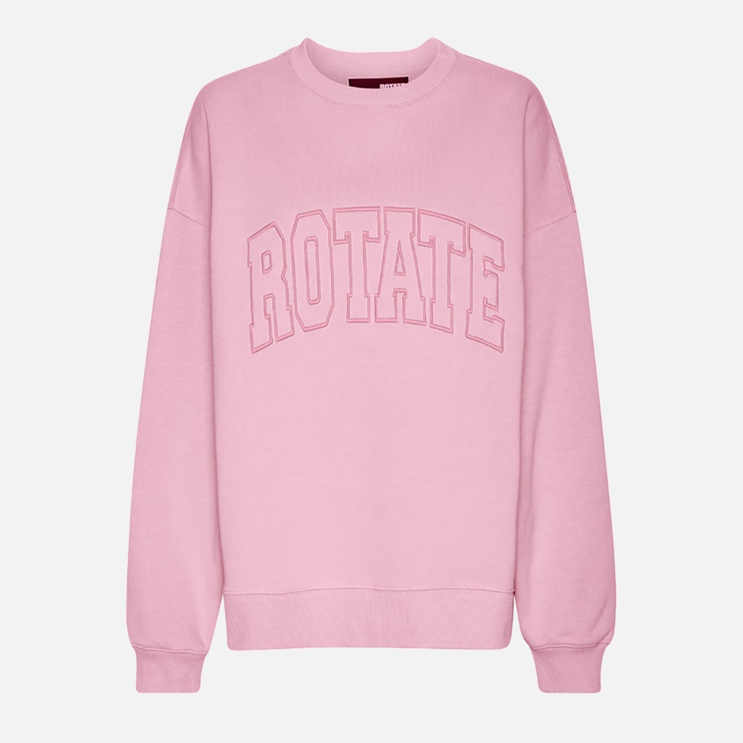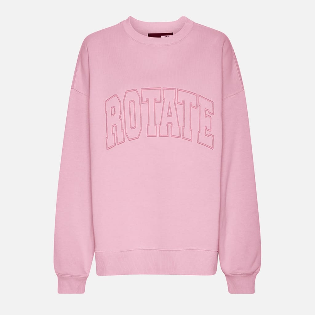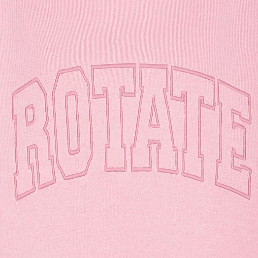 Ribbed crewneck. Dropped shoulders. Ribbed cuffs and hem. Bold, varsity-style "ROTATE" logo embroidered across the chest. Oversized fit. -
