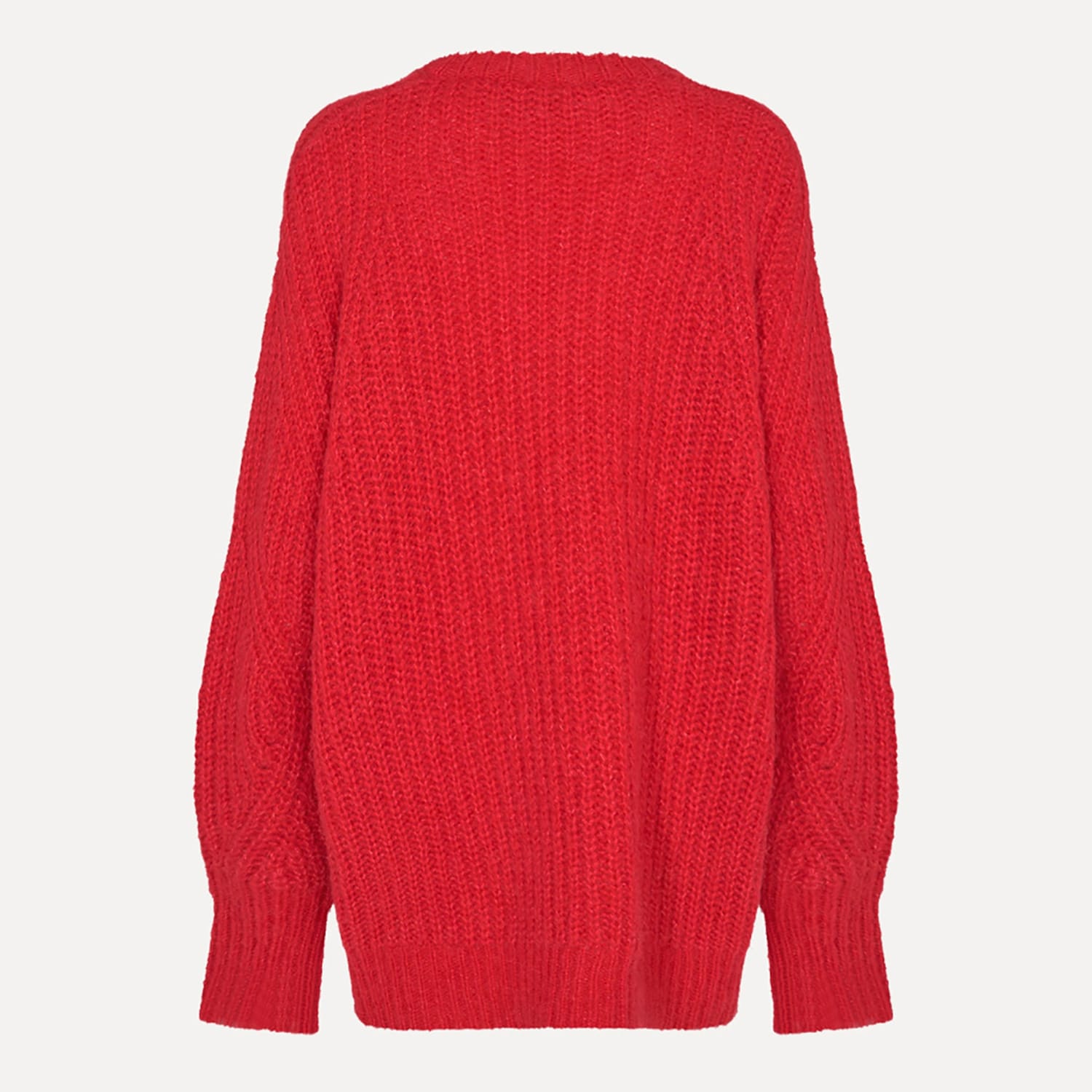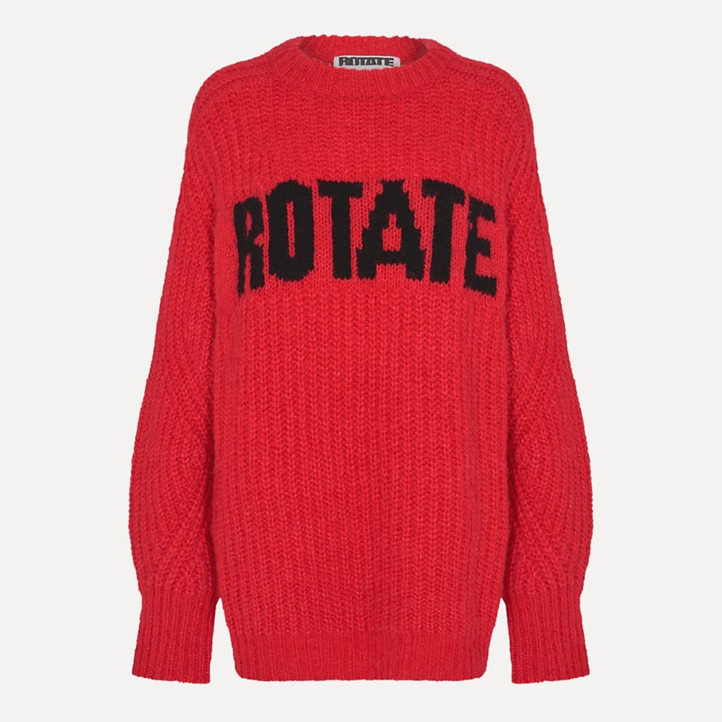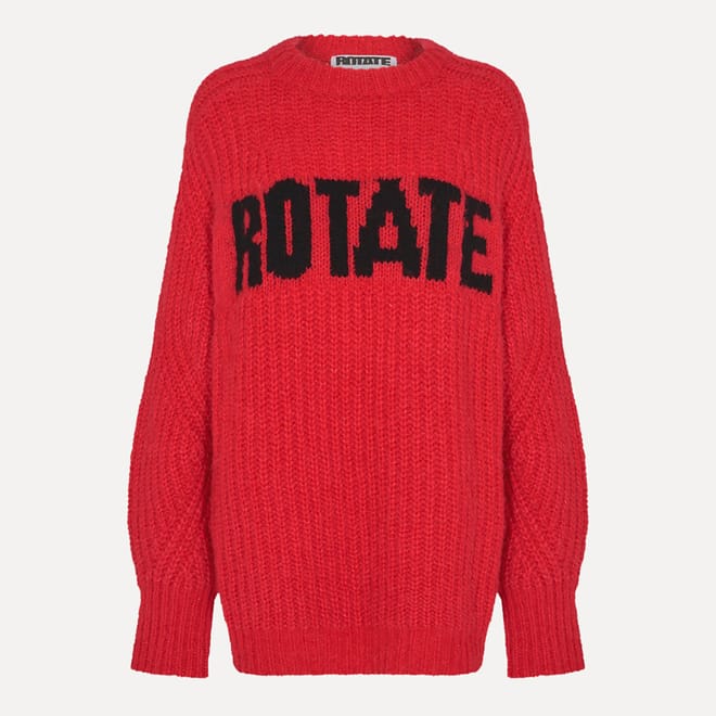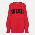 Ribbed crewneck. Ribbed cuffs and hem. "ROTATE" logo on the front. Chunky knit texture. Oversized, relaxed fit. -