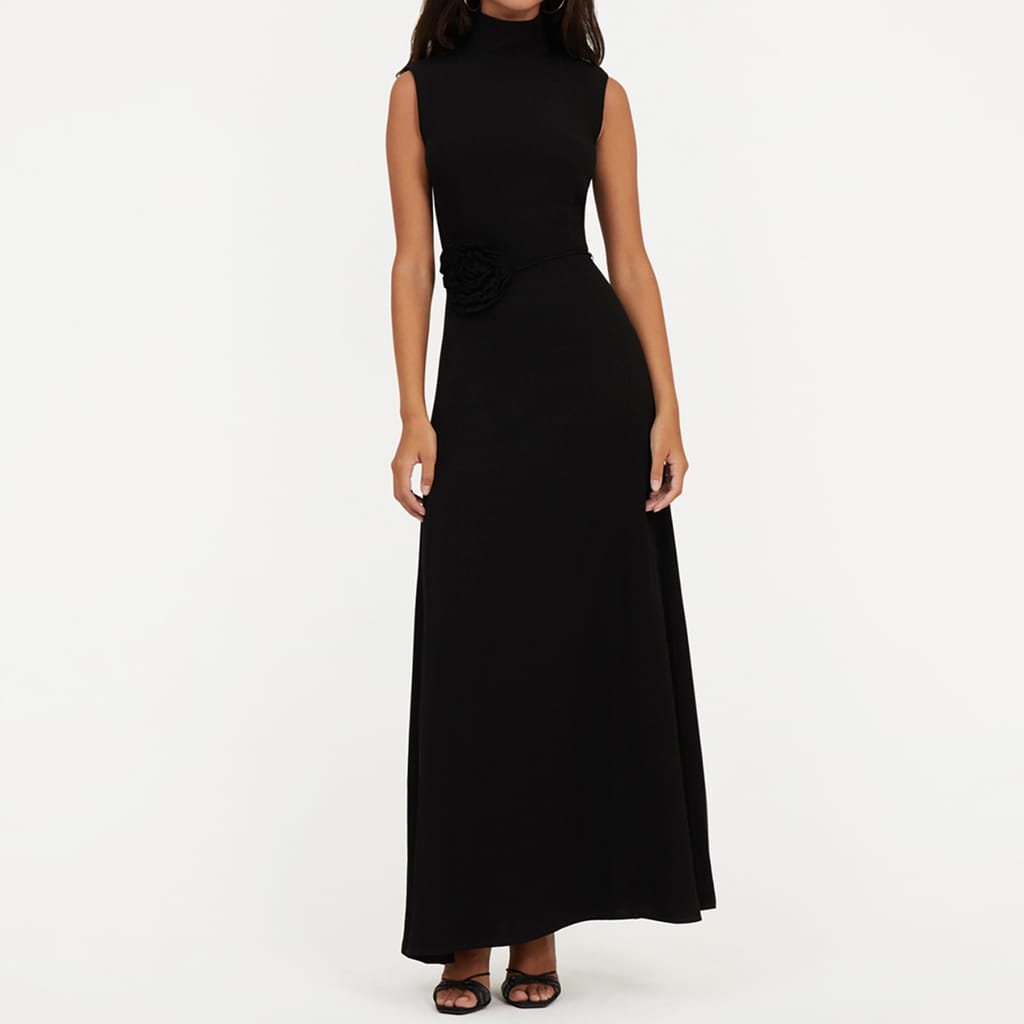 Womens ROTATE Birger Christensen Floral Appliqué Jacquard Maxi Dress in black