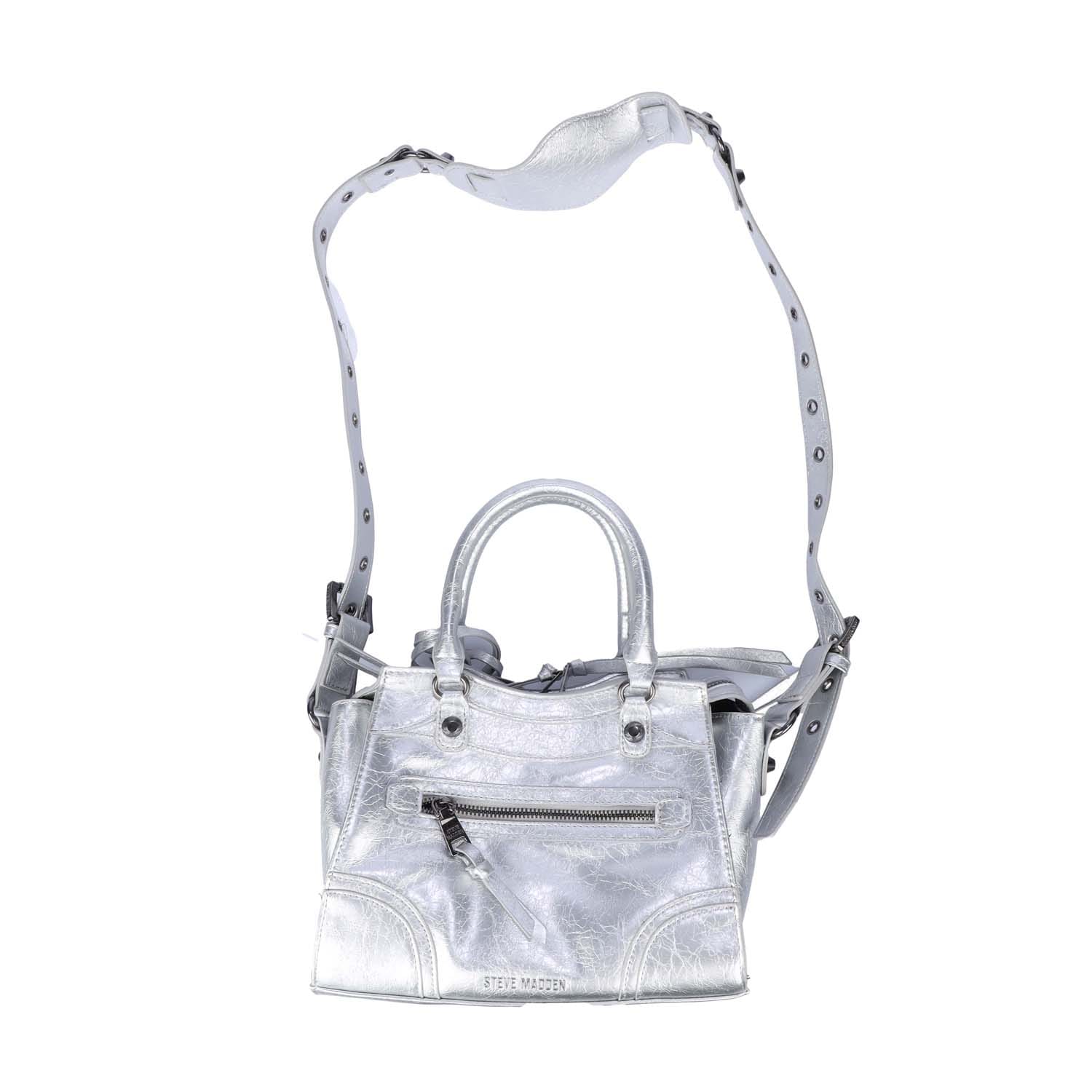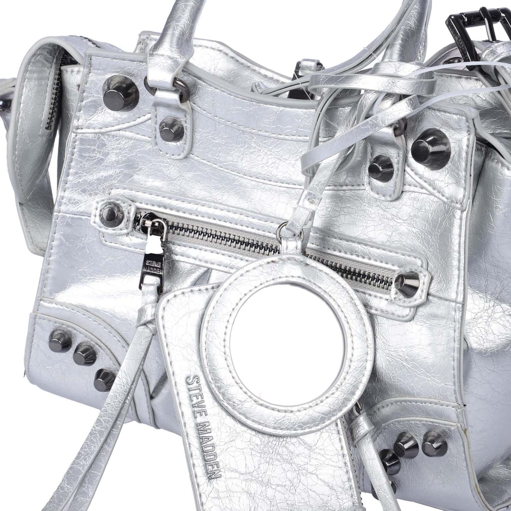 One zip pocket on the front. Zip pocket on the back. Closes with two-way zipper. Two handles. Removable and adjustable shoulder strap. Detachable pendant. Separate case. Inside: One main compartment. One zip pocket. One slip pocket. Separate case. -