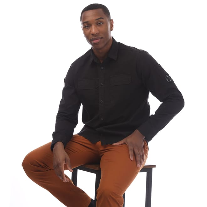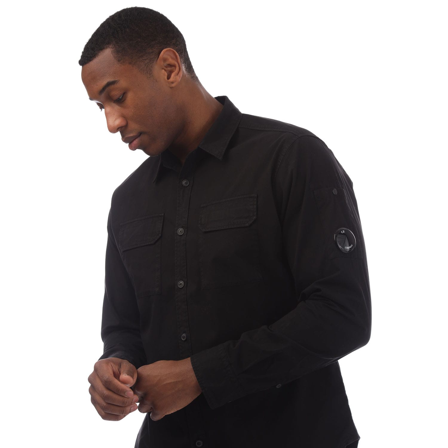 Mens C.P. Company Organic Gabardine Lens Shirt in black.