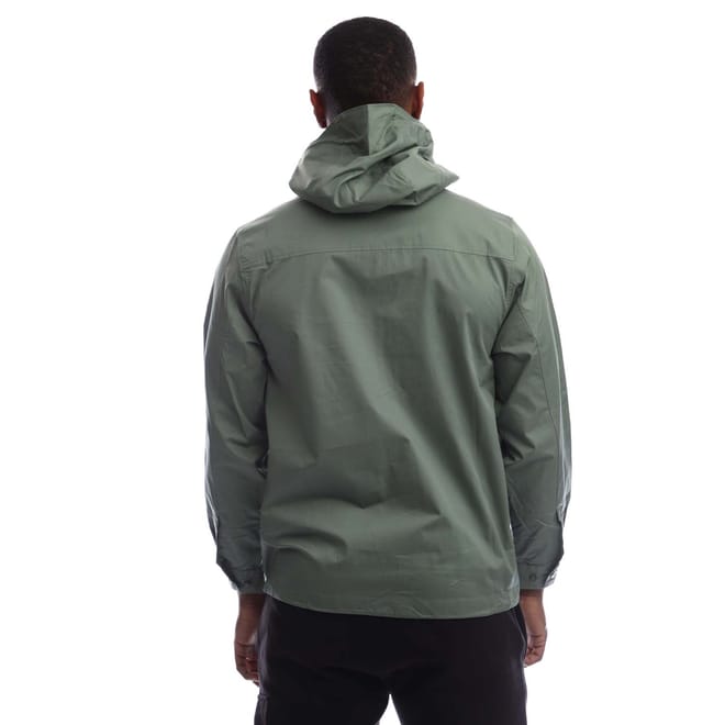 Half zip hooded overshirt crafted in Gabardine cotton. The overshirt includes an adjustable hood and a rubberized logo badge on the chest.
