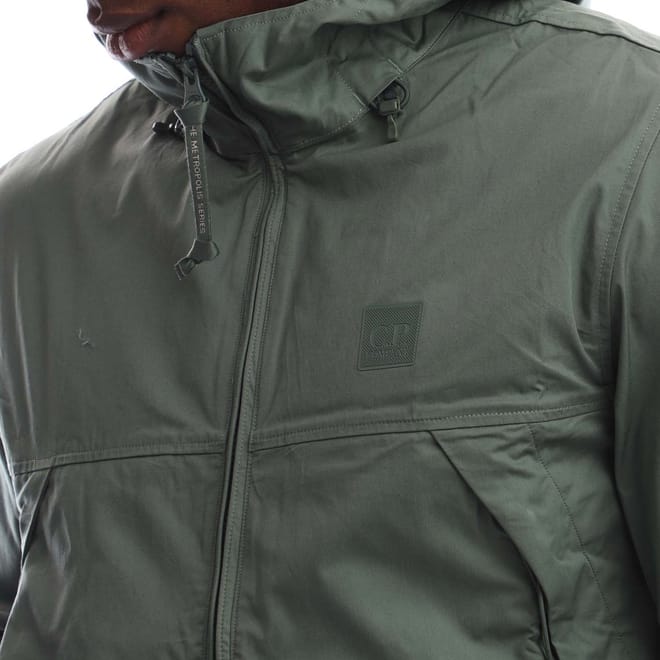 Mens C.P. Company Metropolis Series Gaberdine Hooded Half Zip Overshirt in vibrant green.