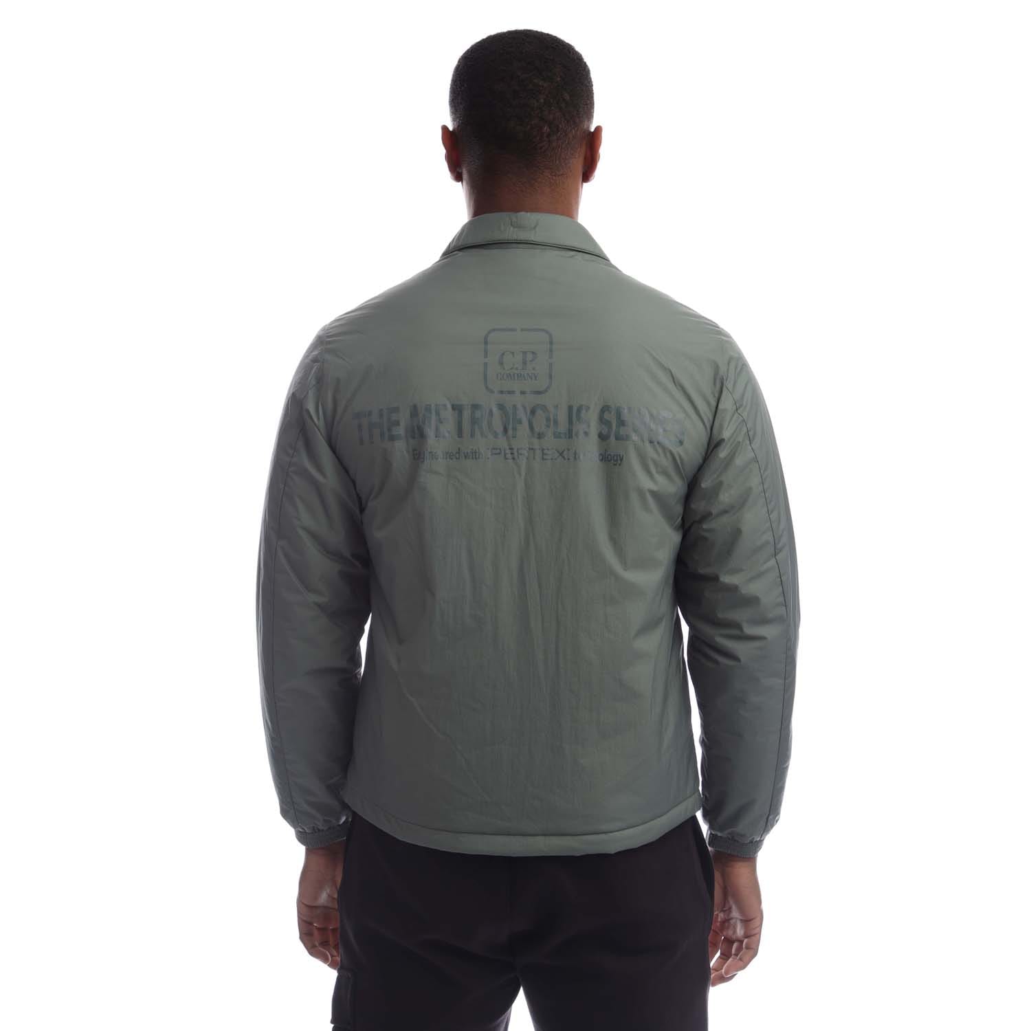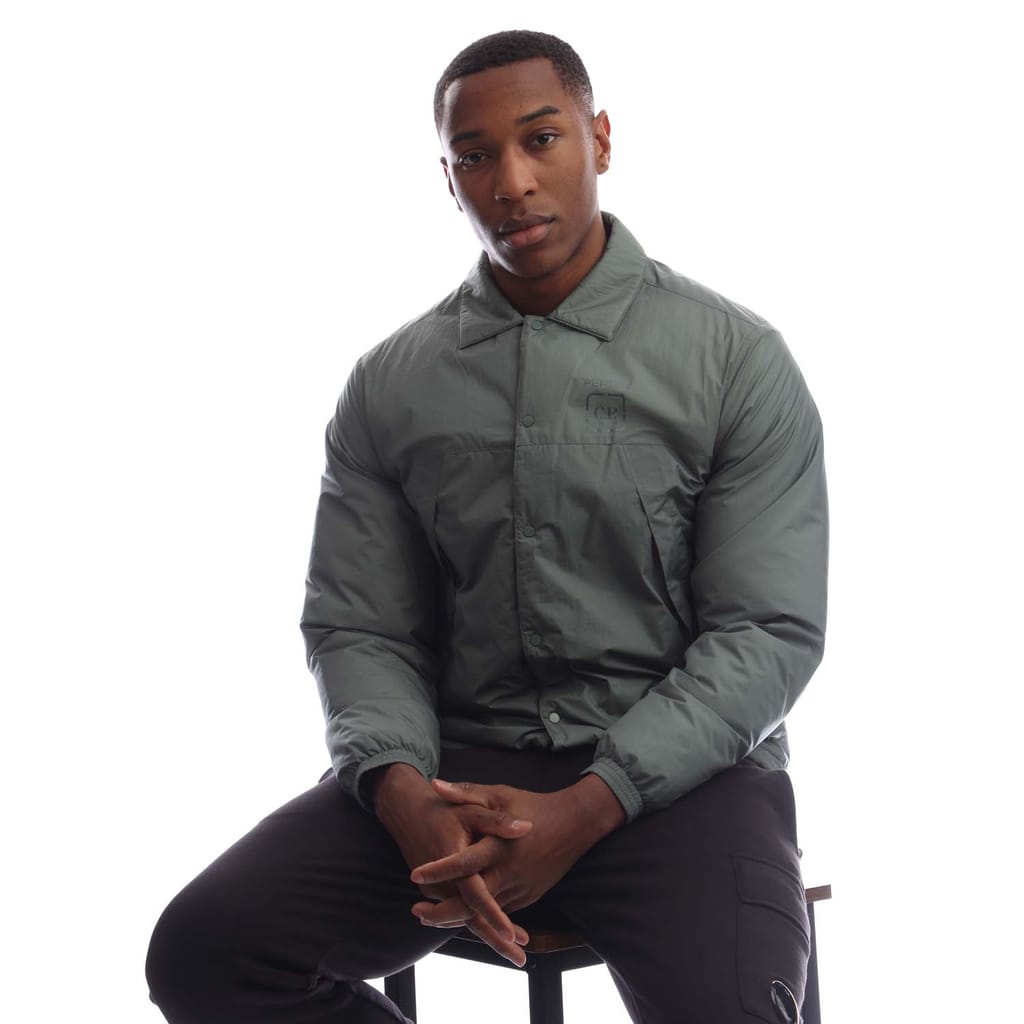 Mens C.P. Company Metropolis Series Pertex Button Overshirt in vibrant green.