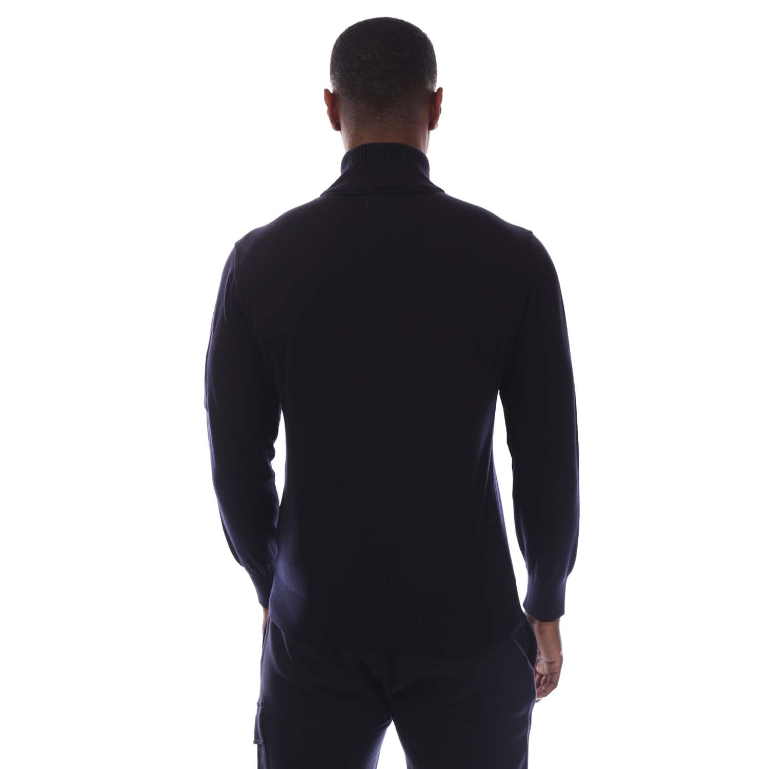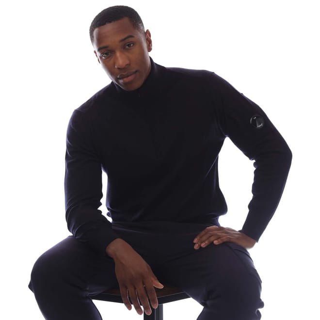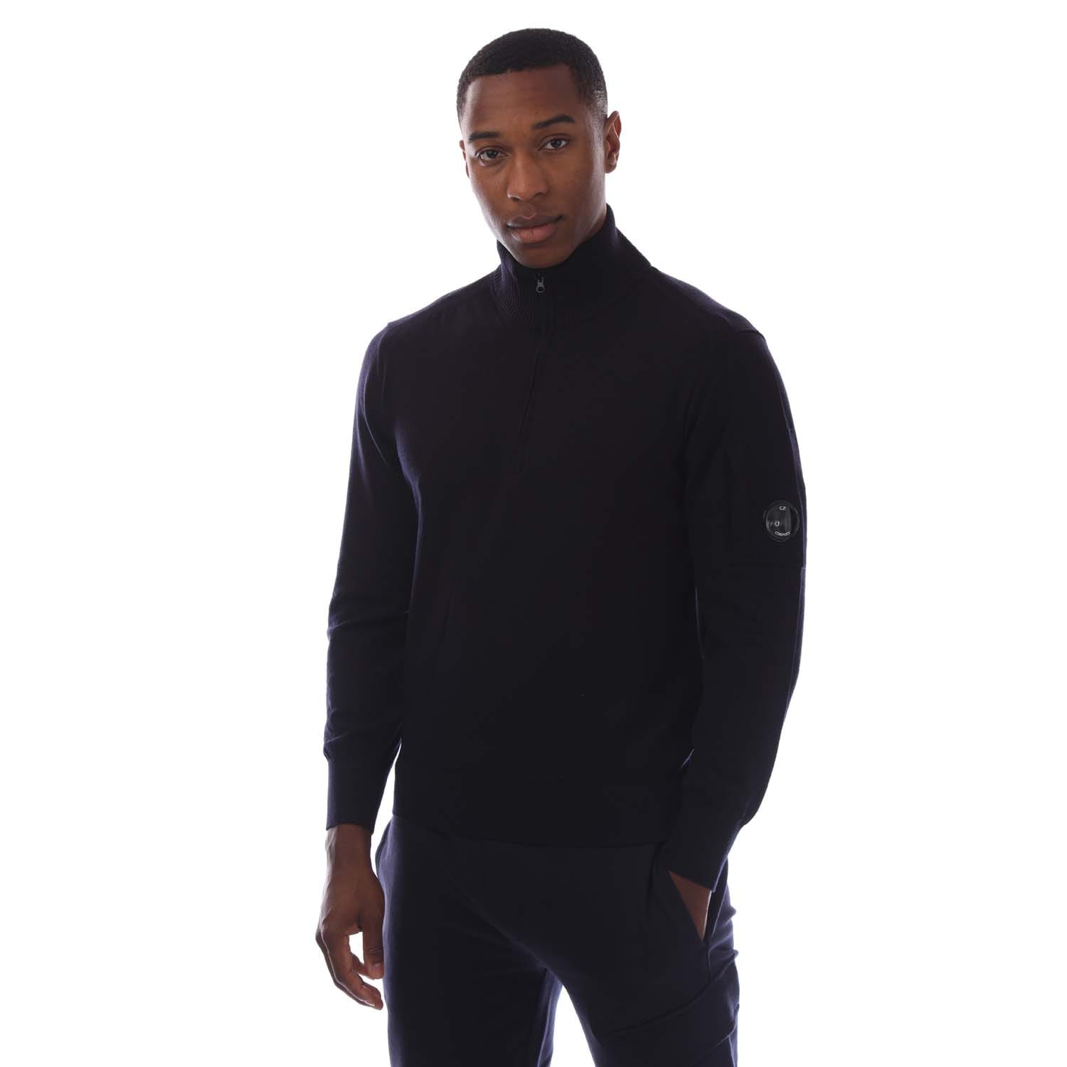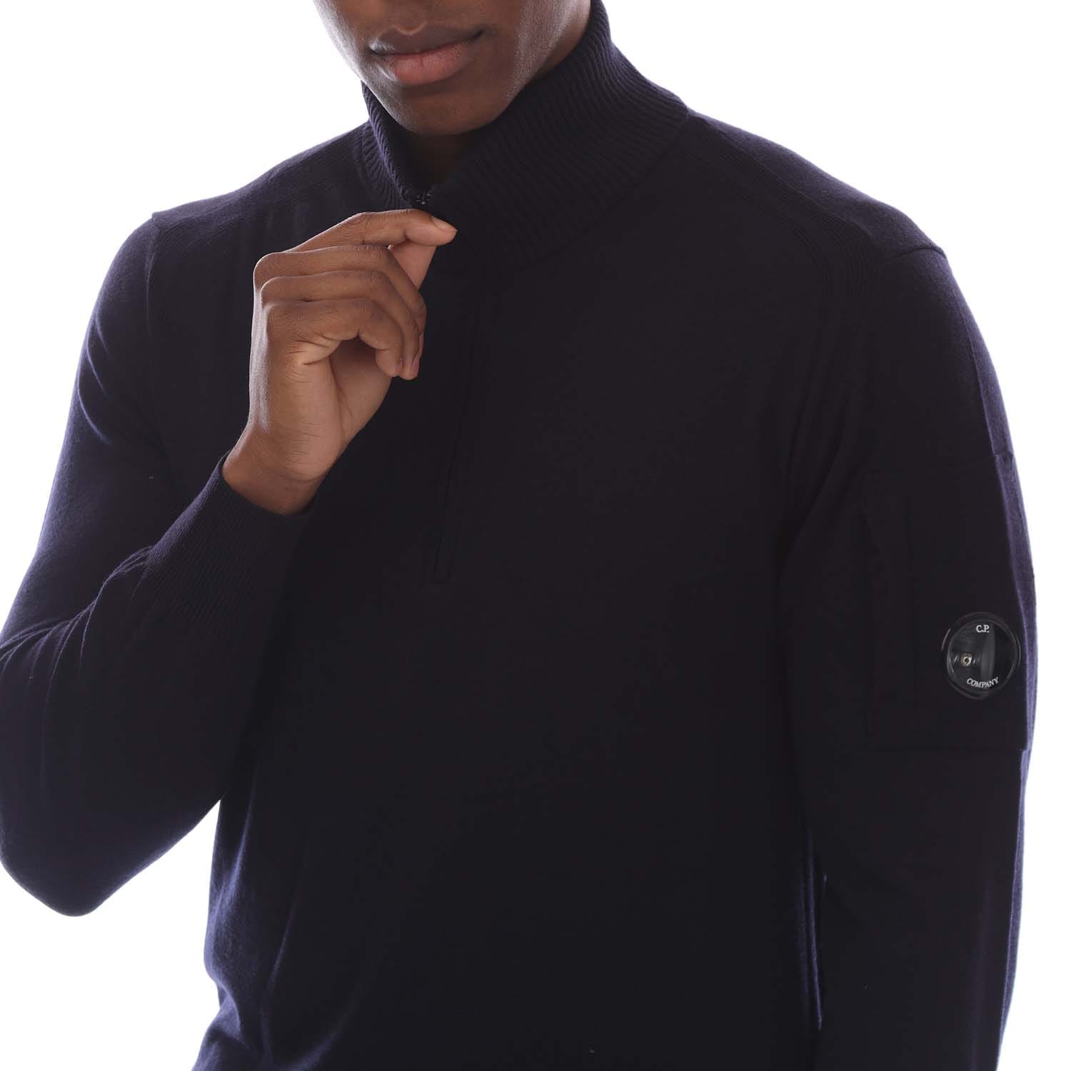 Mens C.P. Company Extrafine Merino Wool Half-Zip Sweater in total eclipse.