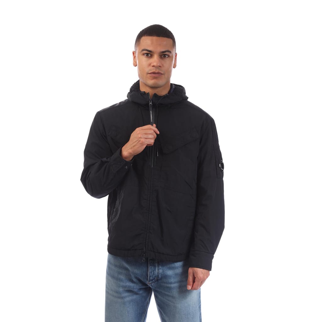 Mens C.P. Company Chrome-R Hooded Zipped Overshirt in navy.