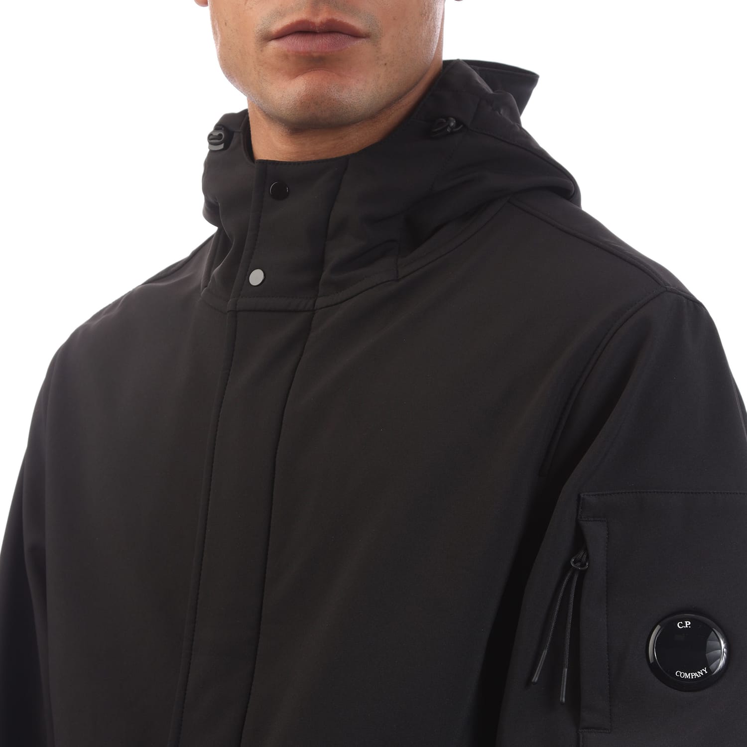 Mens C.P. Company Shell-R Hooded Parka Jacket in black.