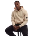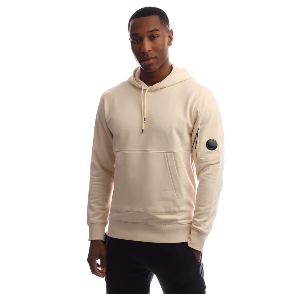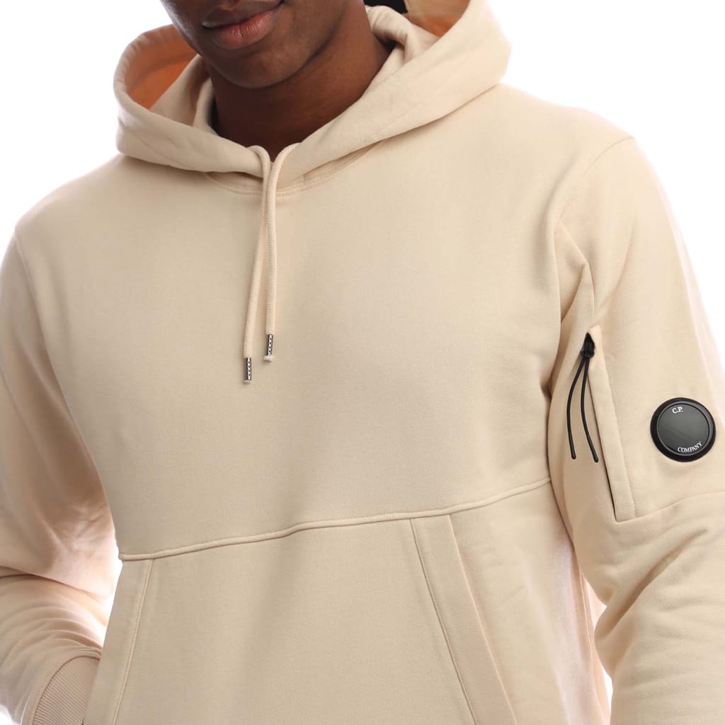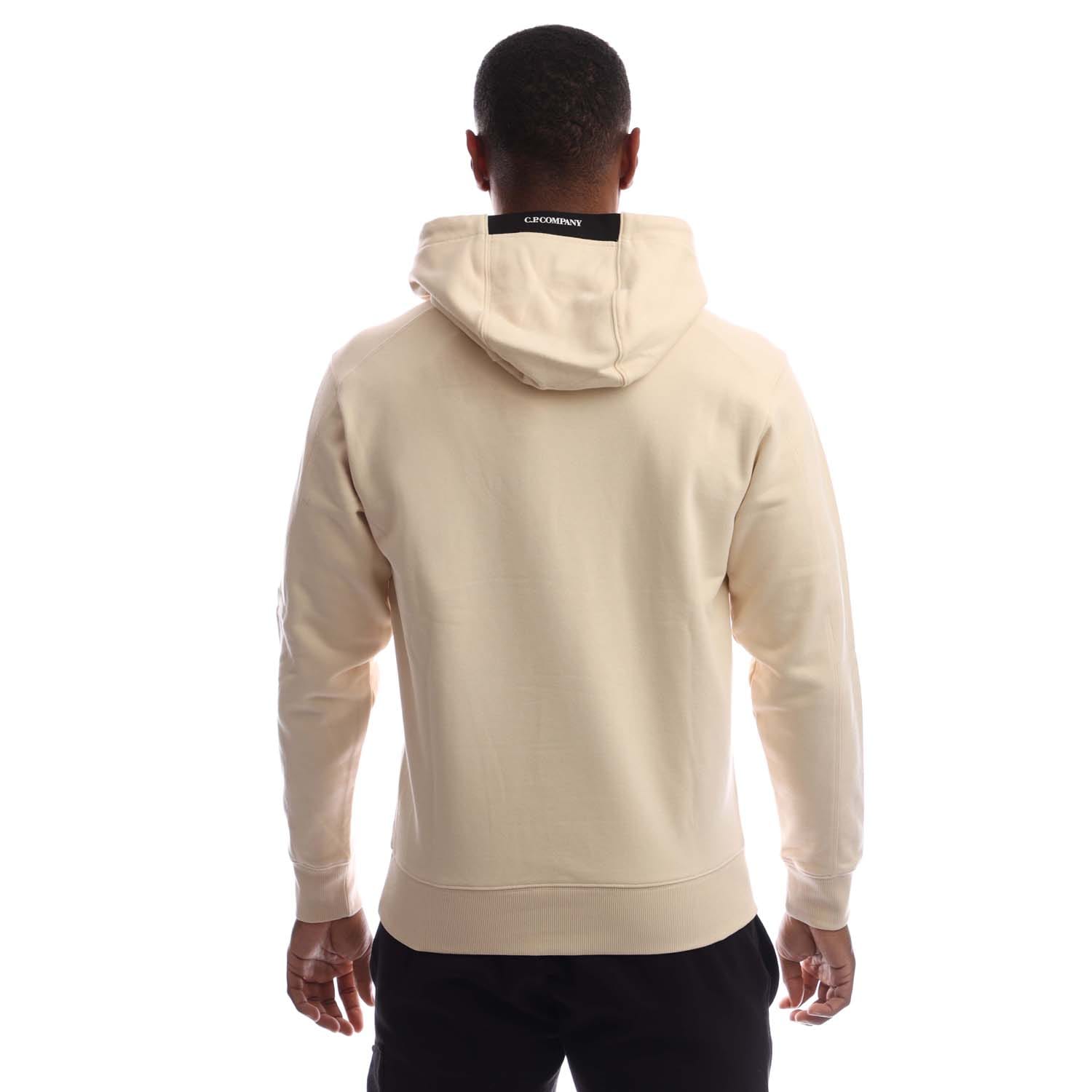 Mens C.P. Company Diagonal Raised Fleece Lens Hoodie in pistachio shell.