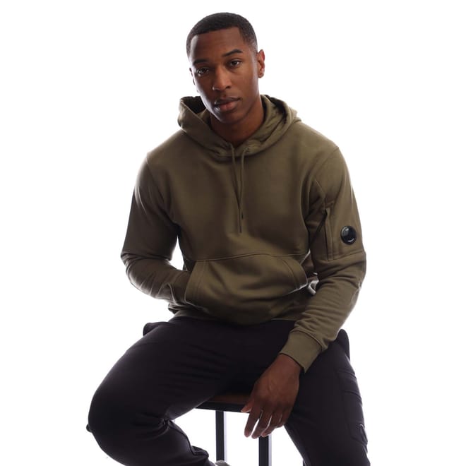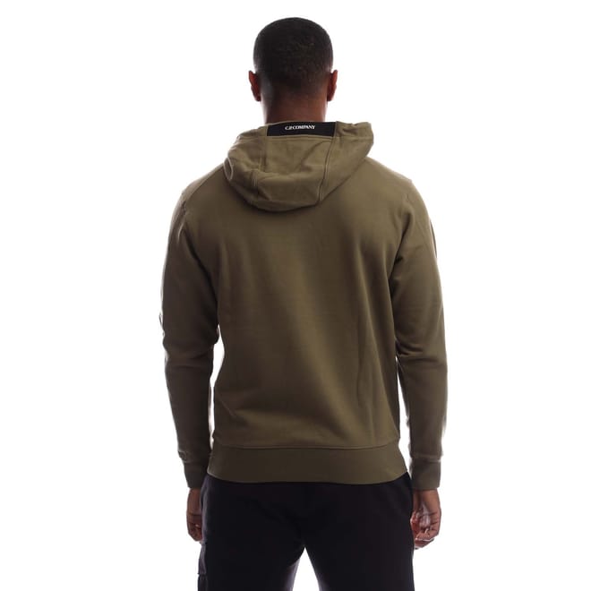 Mens C.P. Company Diagonal Raised Fleece Lens Hoodie in elmwood green.