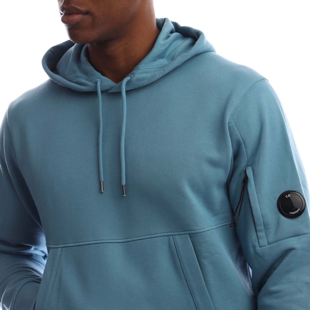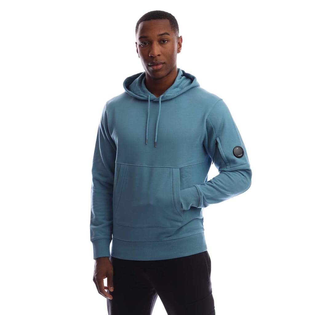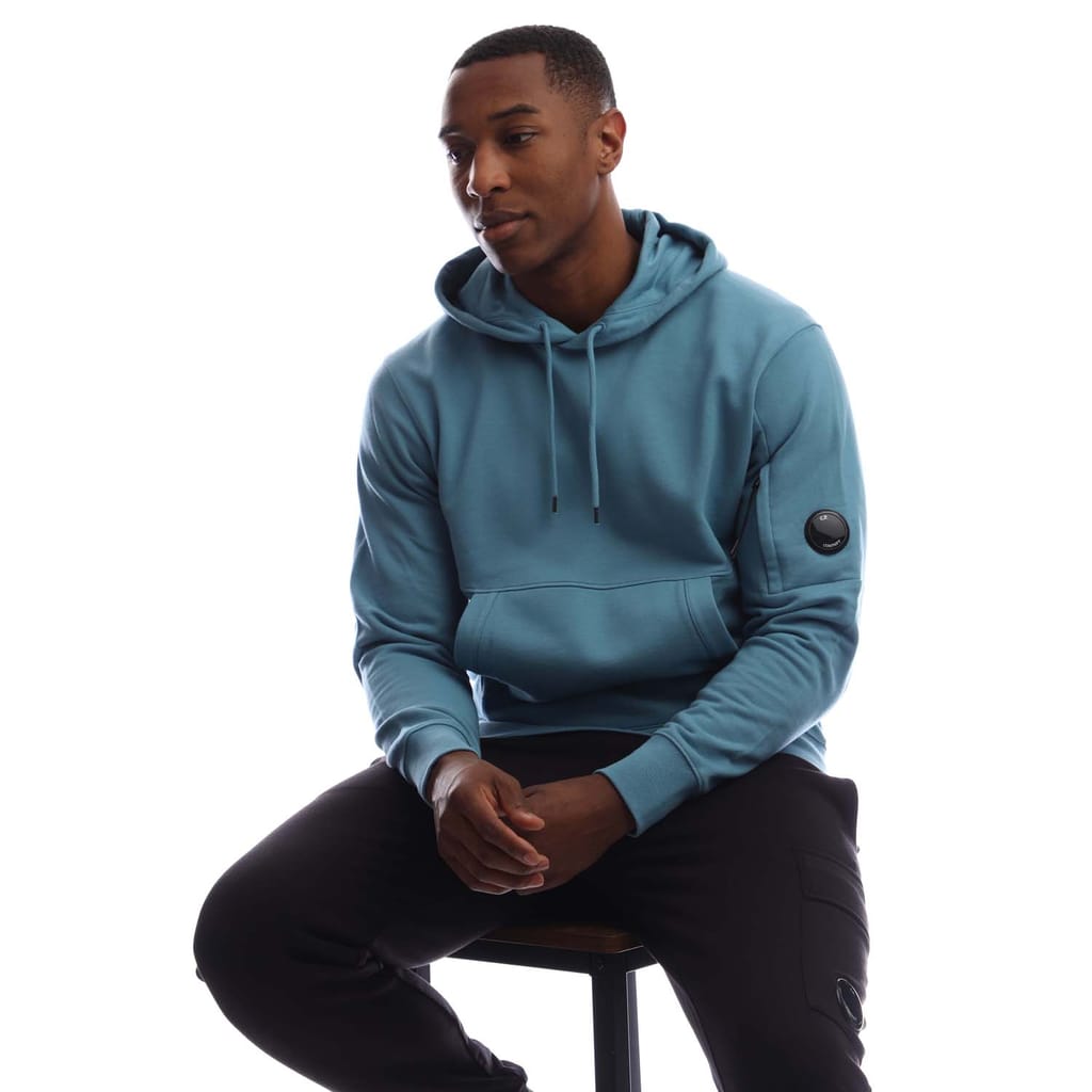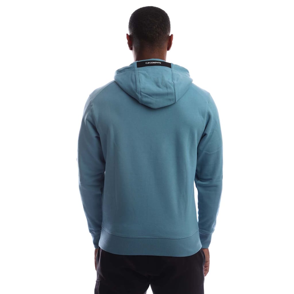 Mens C.P. Company Diagonal Raised Fleece Lens Hoodie in Aegean blue.