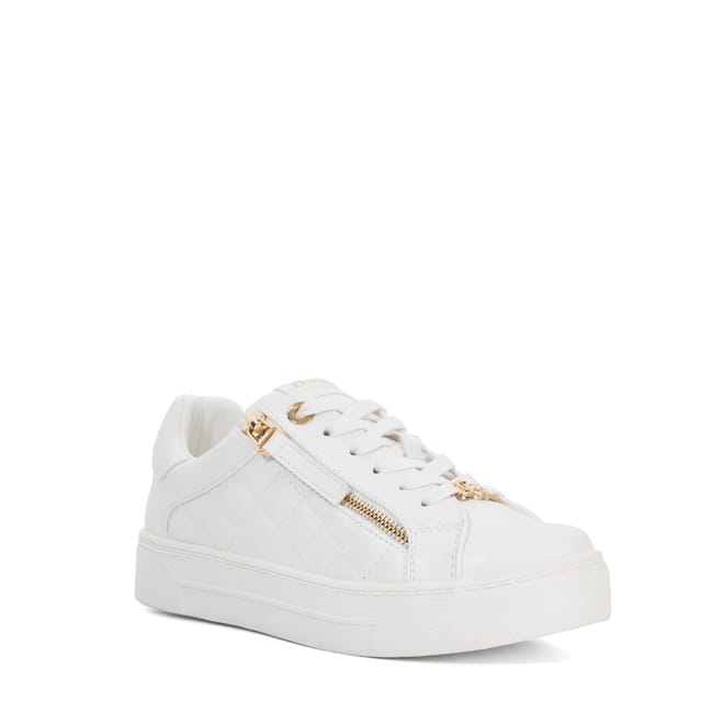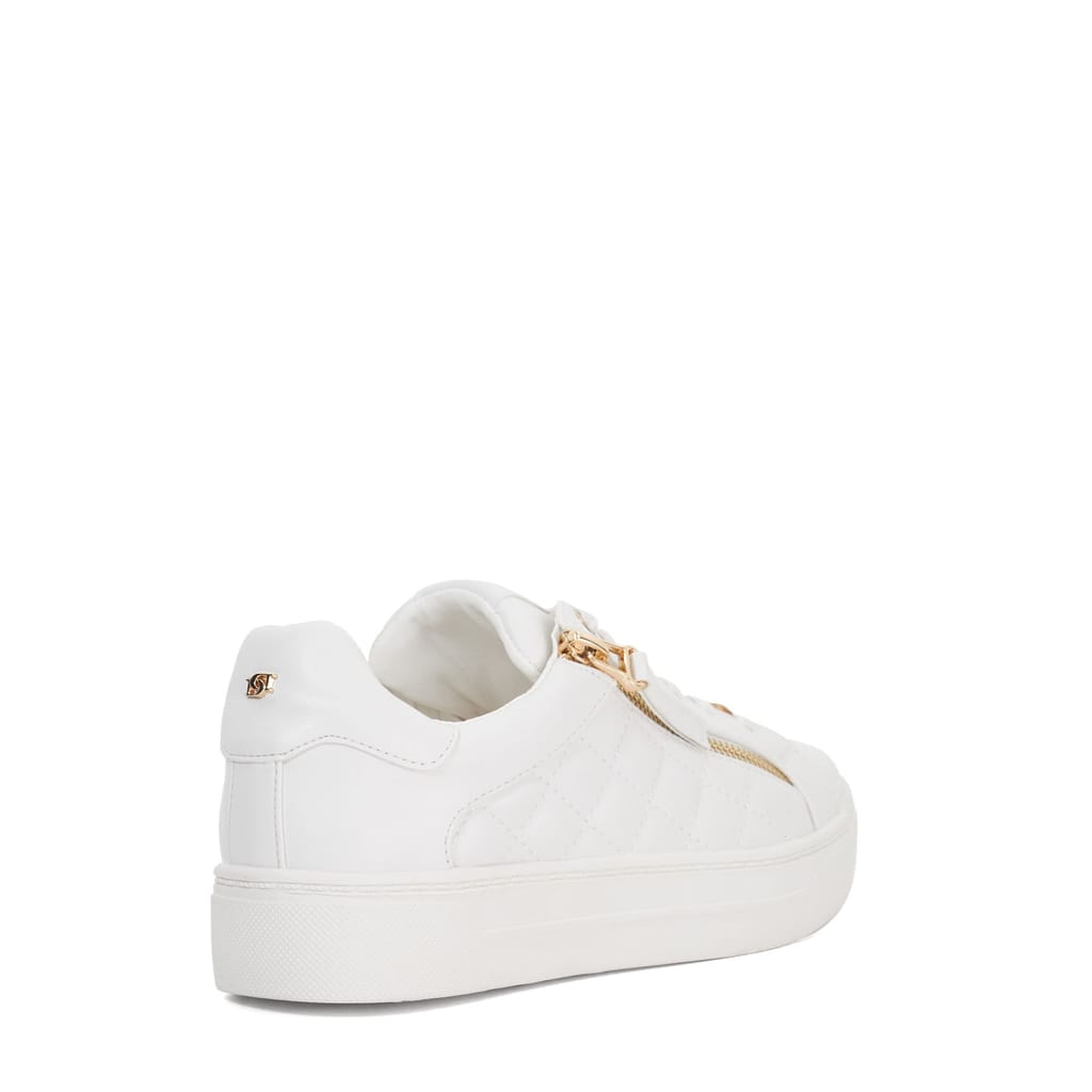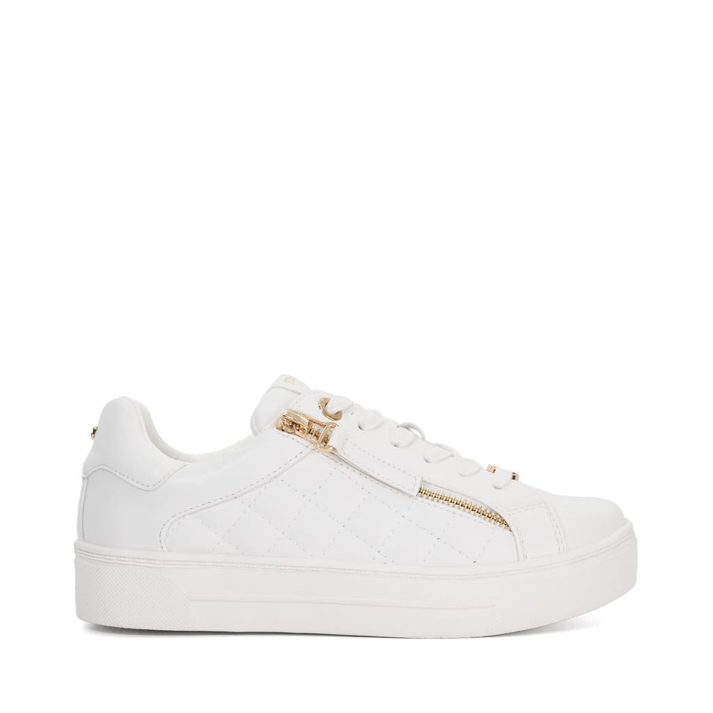 Everyday wear just got a stylish upgrade with Eisel. Featuring a round toe silhouette a quilted finish and signature Dune London interlocking 'D' branding these lace-up trainers bring a modern edge to your casual looks. The side zip adds a unique design element and also ensures convenience for quick on-and-off wear. Whether you're running errands or meeting friends these trainers offer a perfect blend of comfort functionality and trend-forward style. -