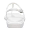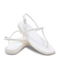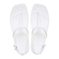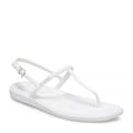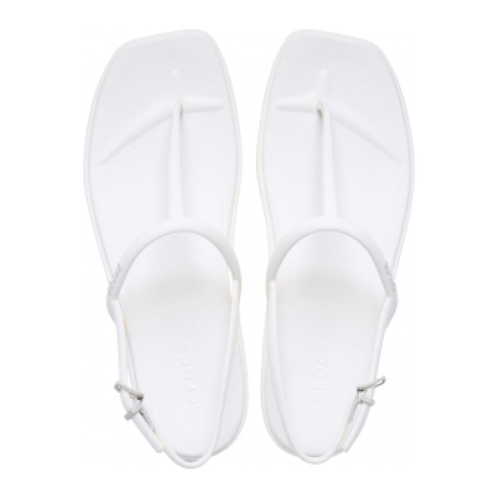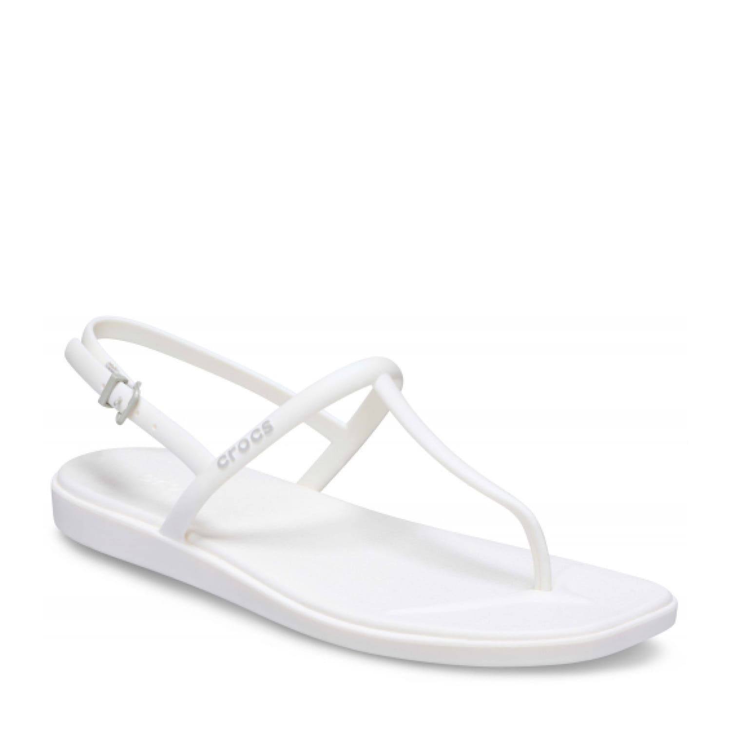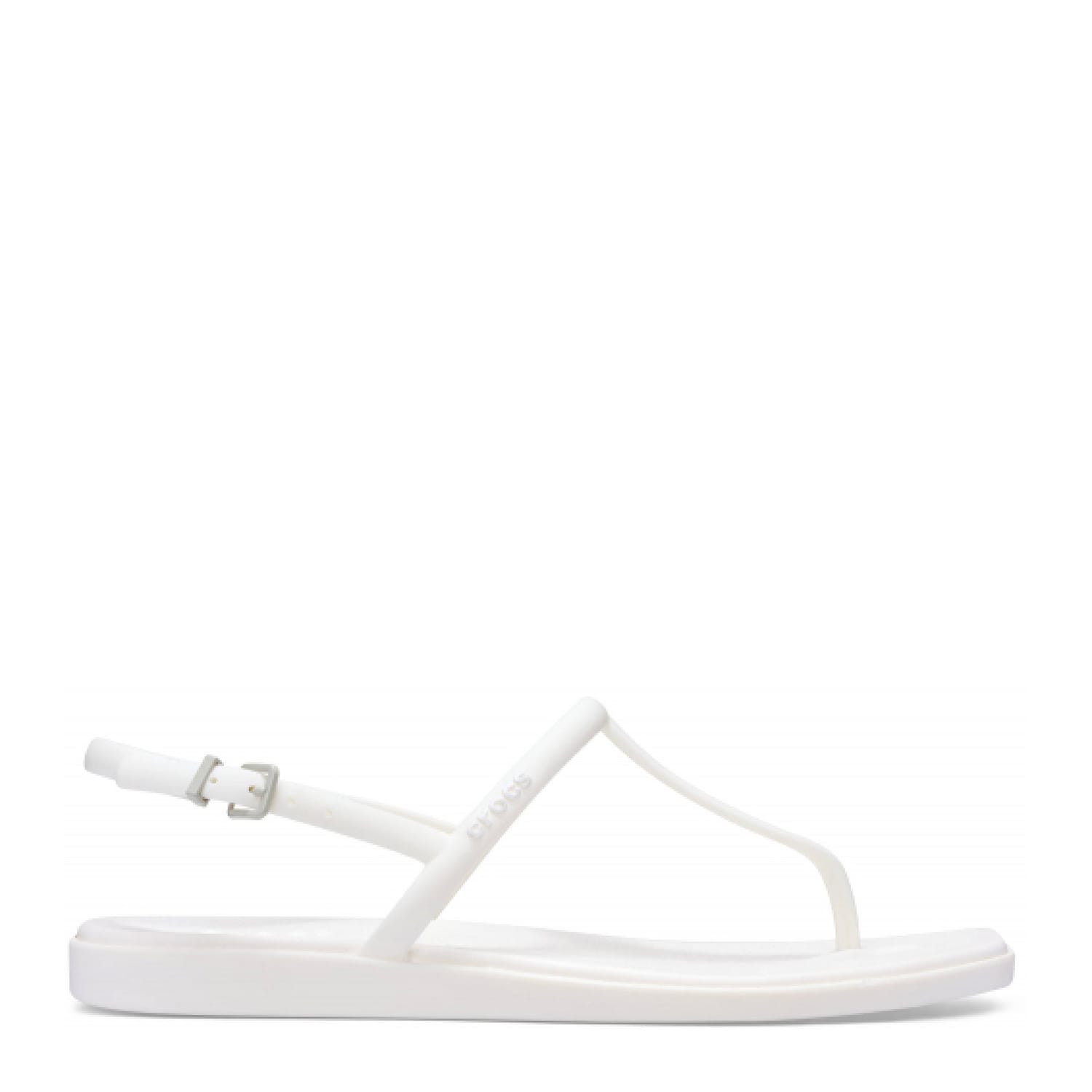 T-bar thong sandals with an adjustable ankle strap and a flat sole. -