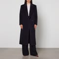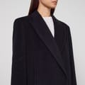 Double-breasted, peaked lapel, padded shoulders, welt pockets. -
