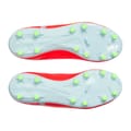 Super-soft synthetic leather upper provides a snug fit 3D print & mudguard for additional touch & control Textile collar & tongue for a sock-like fit with premium internal foam for heel hold & added comfort Asymmetrical tongue allows for additional space on the medial side for control, passing & shooting TPU outsole with conical studs provides ideal traction -