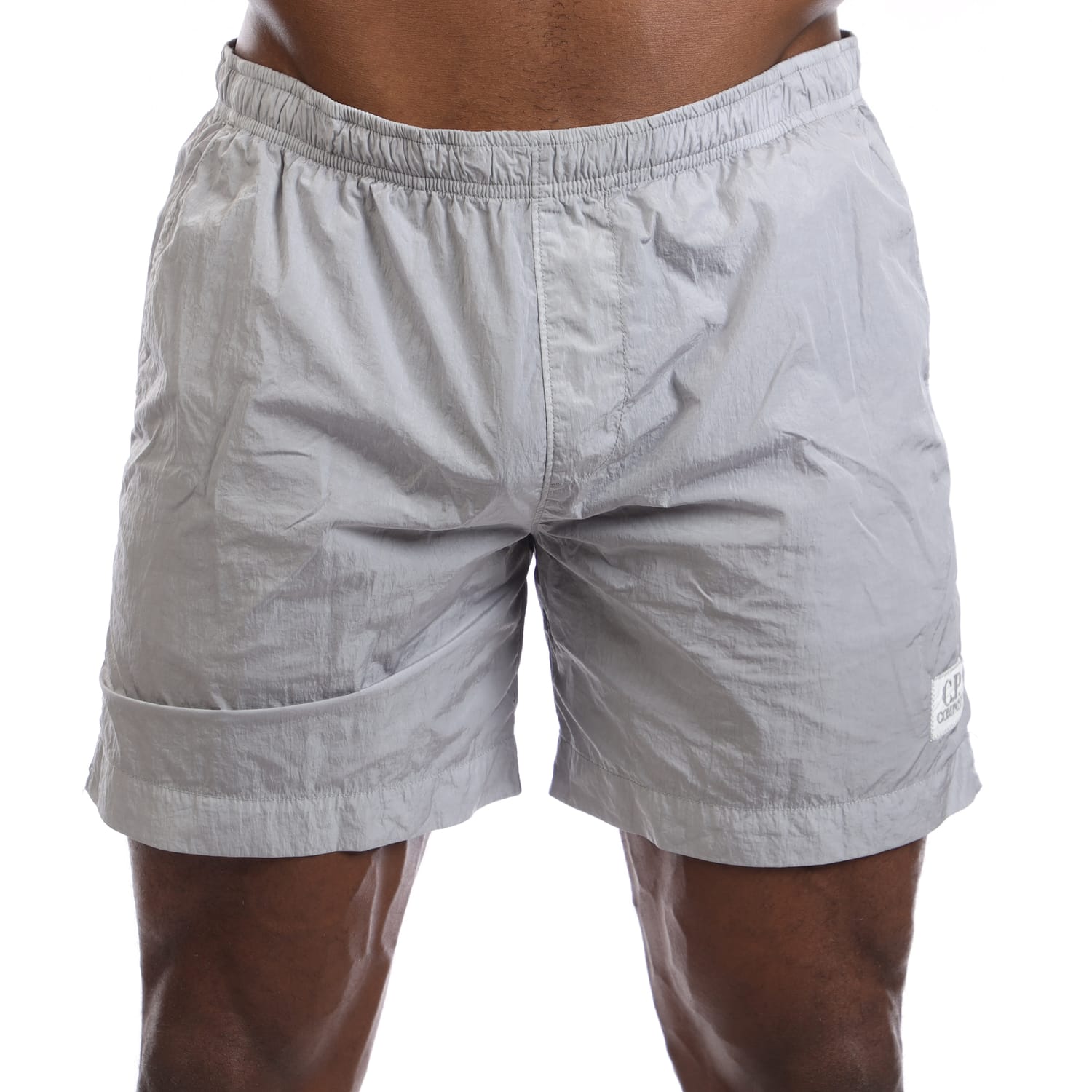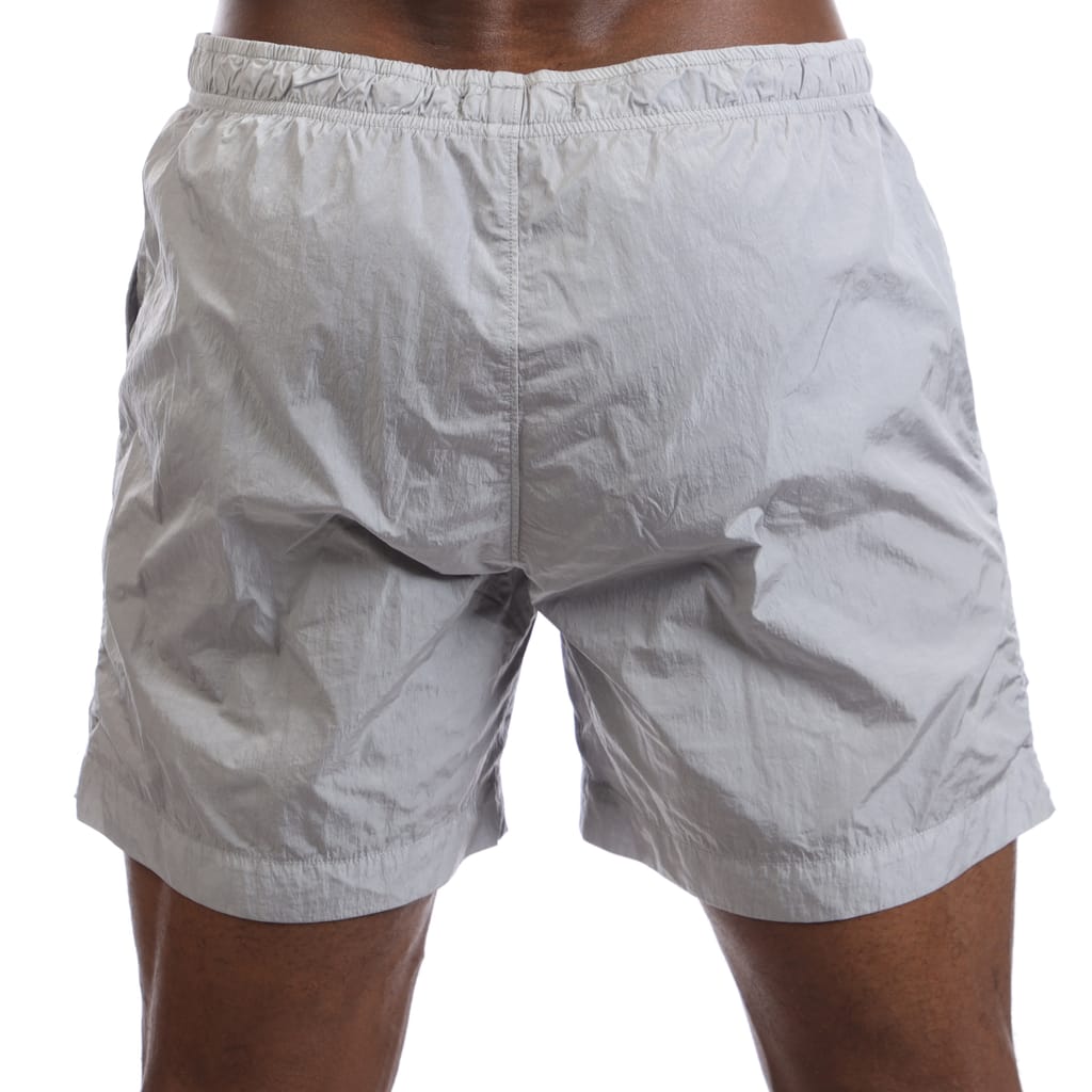 Mens C.P. Company Chrome Logo Beach Shorts in grey.