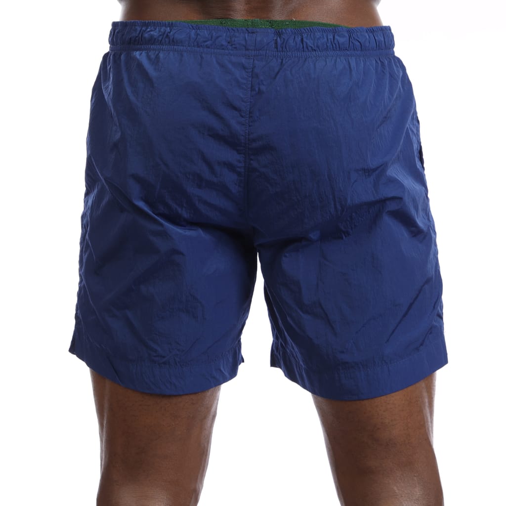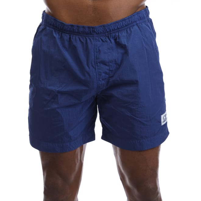 Mens C.P. Company Chrome Logo Beach Shorts in blue.