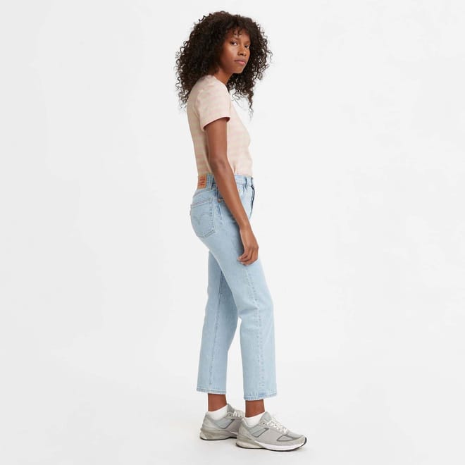 Button fly. 5-pocket styling. High rise. Low stretch. Straight, cropped leg. Fitted through your hip and thigh. -