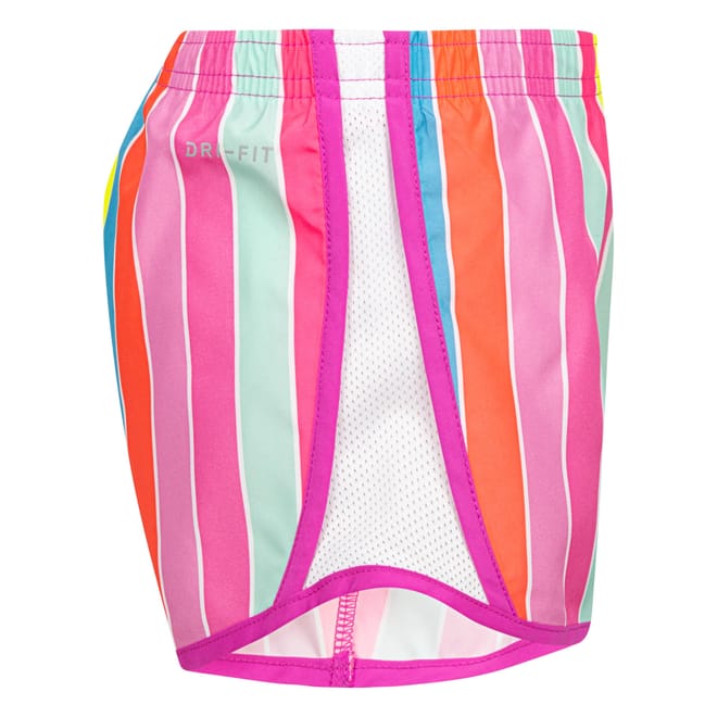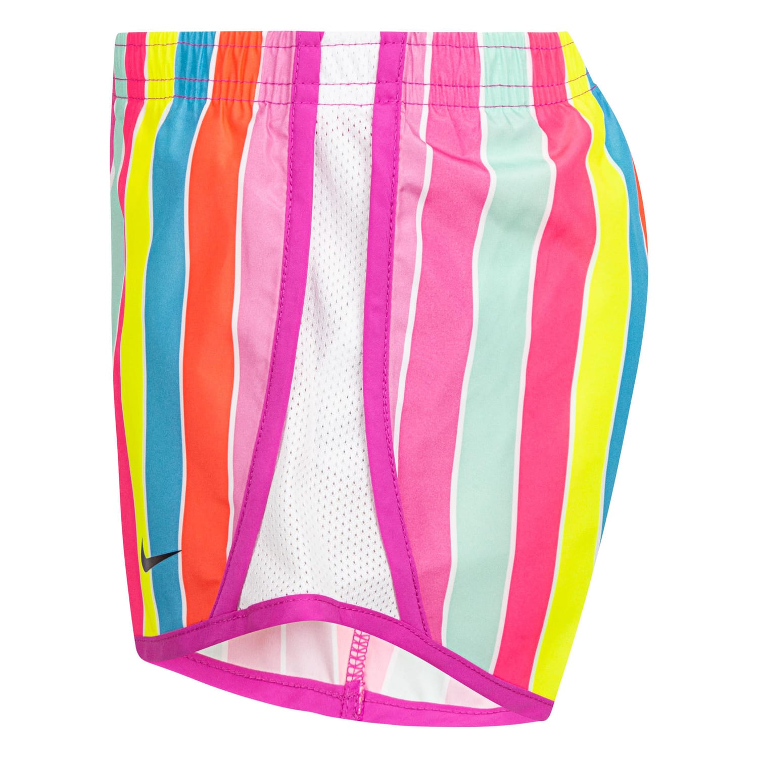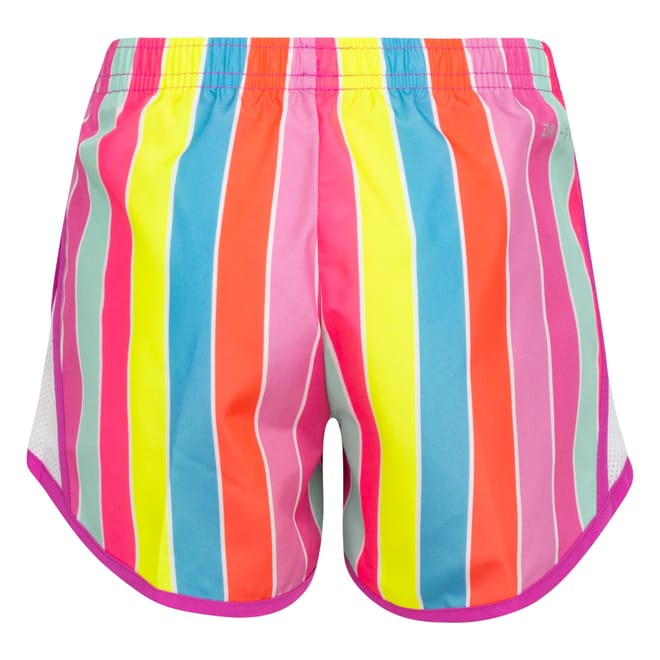 Elastic waistband. Internal brief liner. Mesh side panels for ventilation. Dri-FIT technology. Vibrant, multi-color vertical stripe pattern. -